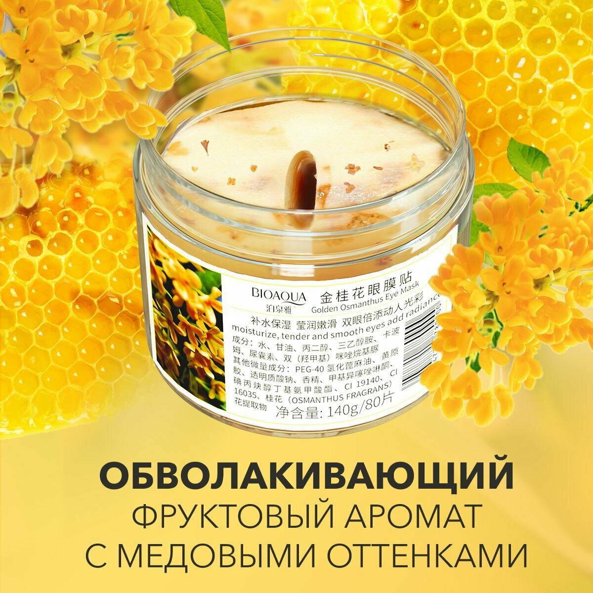 Bioaqua Тканевые патчи для глаз c экстрактом золотого османтуса от темных кругов, отеков, морщин для лица, 80шт. интересное: