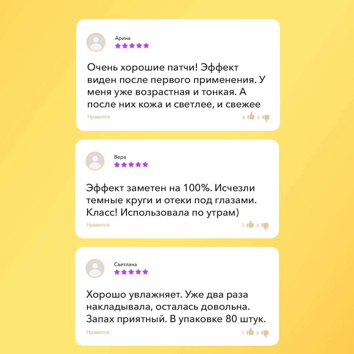 Патчи очень эффективны, снимают отеки, приятны для кожи!