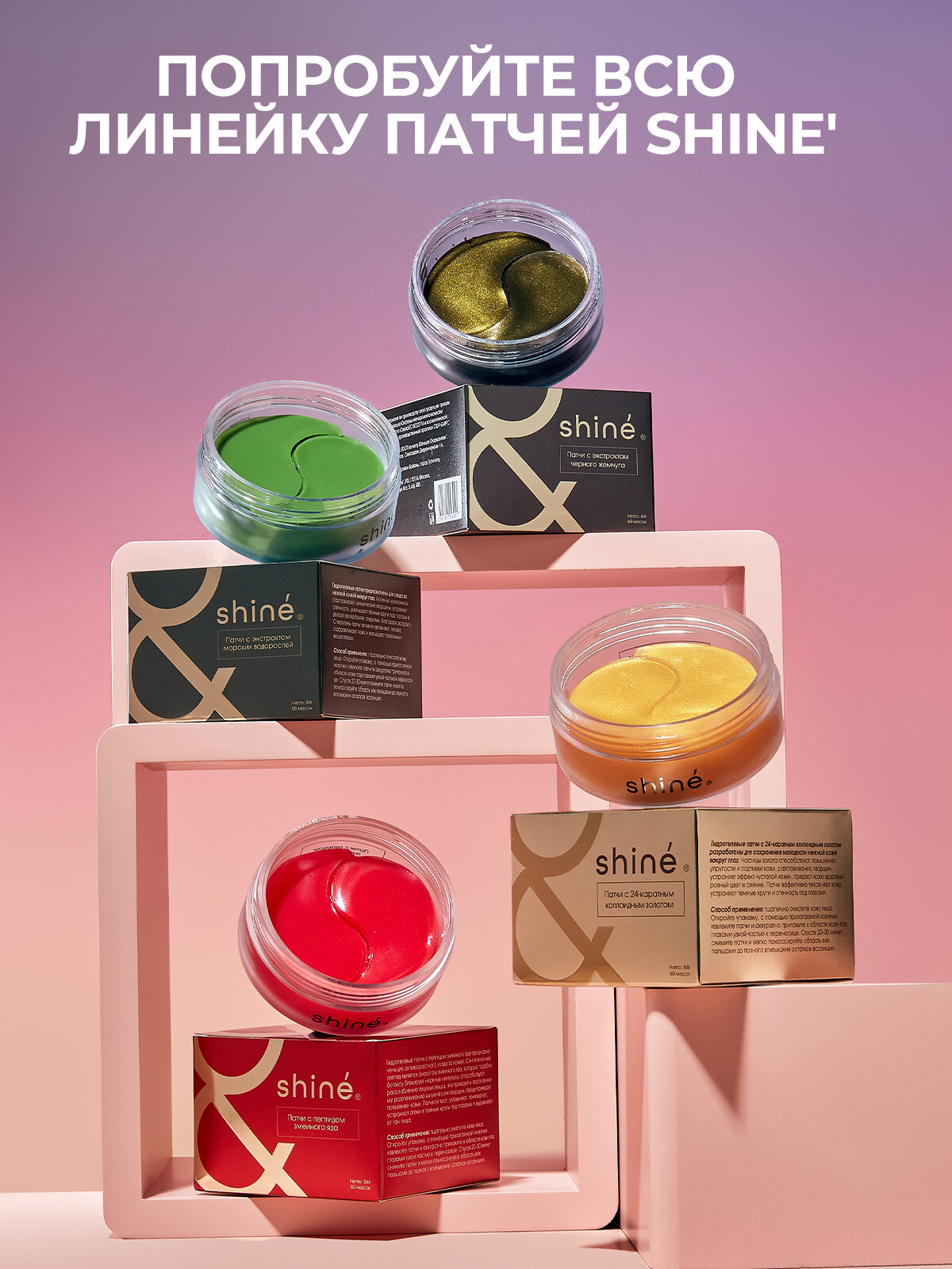 Гидрогелевые патчи для глаз Shine' с экстрактом черного жемчуга и муцином улитки омолаживающие, 60 шт. интересное: