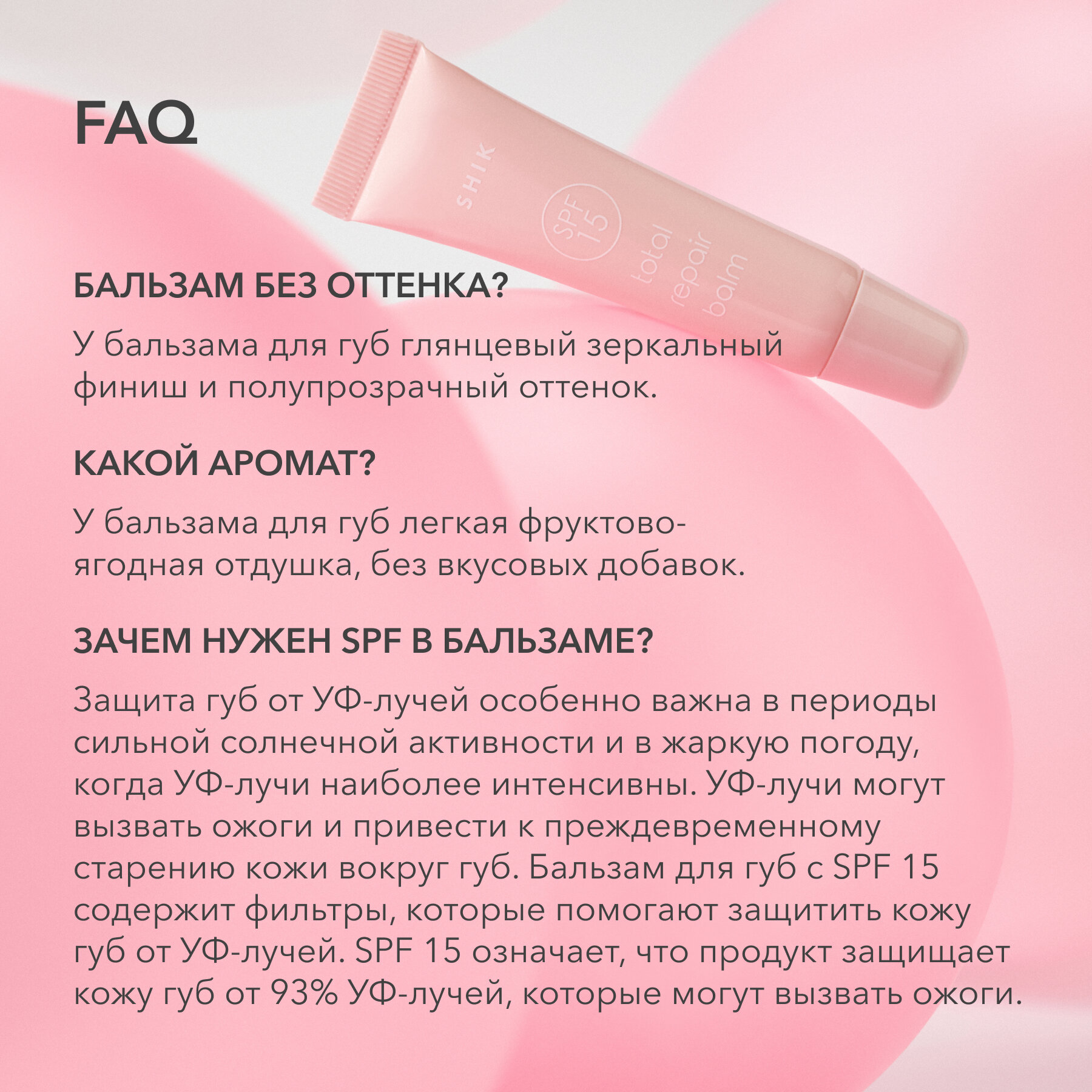 Бальзам для губ увлажняющий с SPF 15 питающий и восстанавливающий кожу 11 мл SHIK TOTAL REPAIR BALM