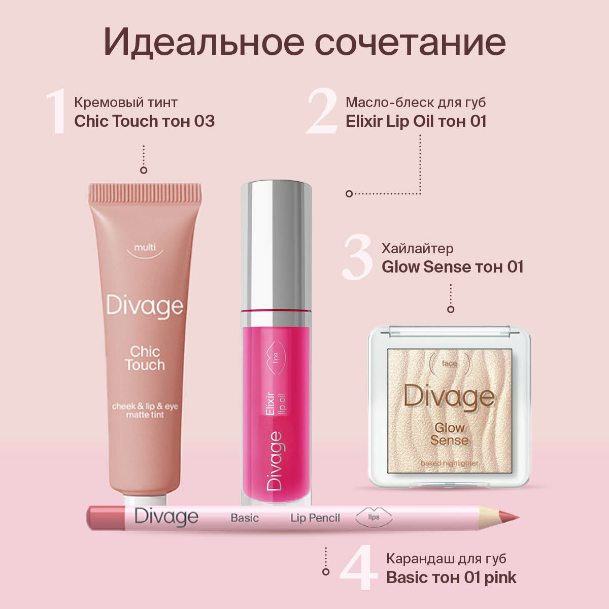 Масло для губ Divage Elixir Lip Oil, тон: 02 розовый, 4.5мл
