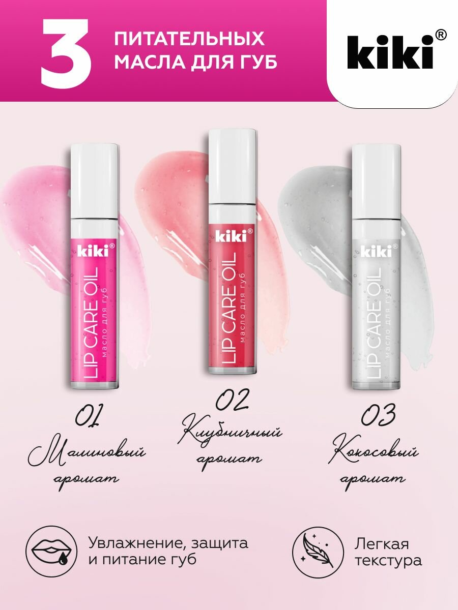 Масло для губ KIKI LIP CARE OIL с ароматом "клубника", блеск и увлажнение, тон 02, 3,5 мл, кики