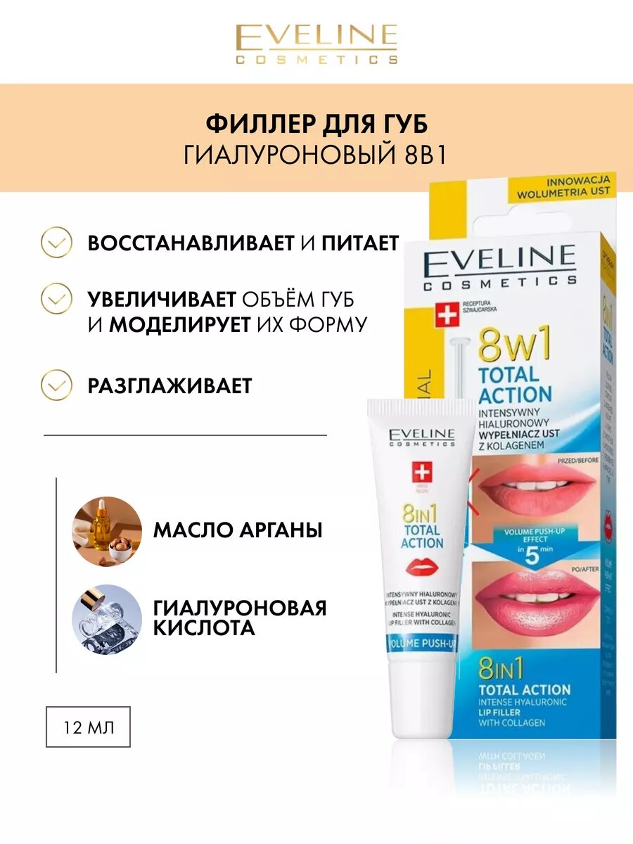 Ниже Вы можете прочитать отзывы на EVELINE Lip Therapy Professional Гиалуроновый филлер для губ с коллагеном Total Action 8в1, ознакомится с подробными характеристиками, посмотреть интересные обзоры и фотографии на EVELINE Lip Therapy Professional Гиалуроновый филлер для губ с коллагеном Total Action 8в1.