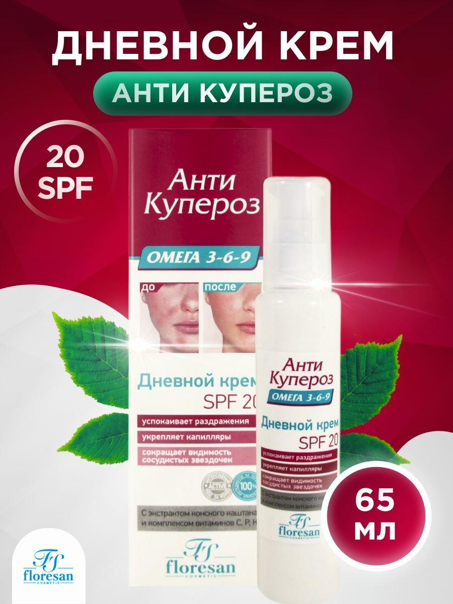 Floresan Дневной крем SPF 20 Анти Купероз с экстрактом конского каштана и комплексом витаминов 65 мл