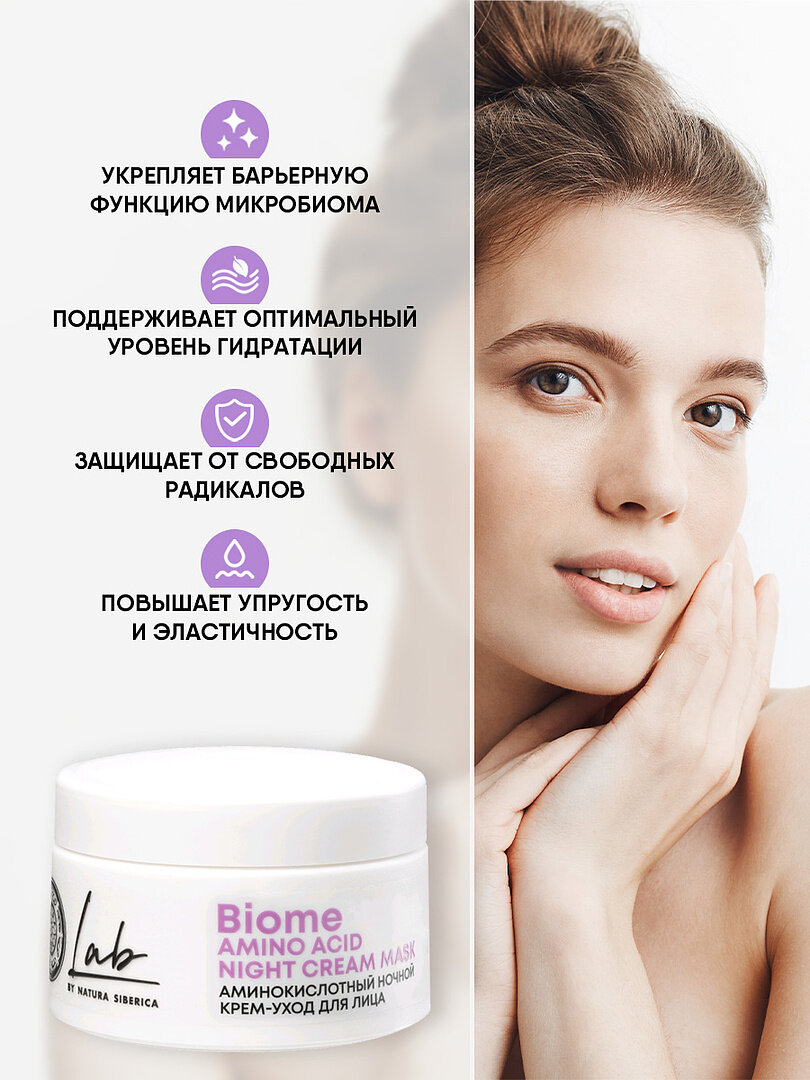 Купить Аминокислотный ночной крем для чувствительной кожи лица Natura Siberica LAB Biome Amino Acid увлажняющий 50 мл