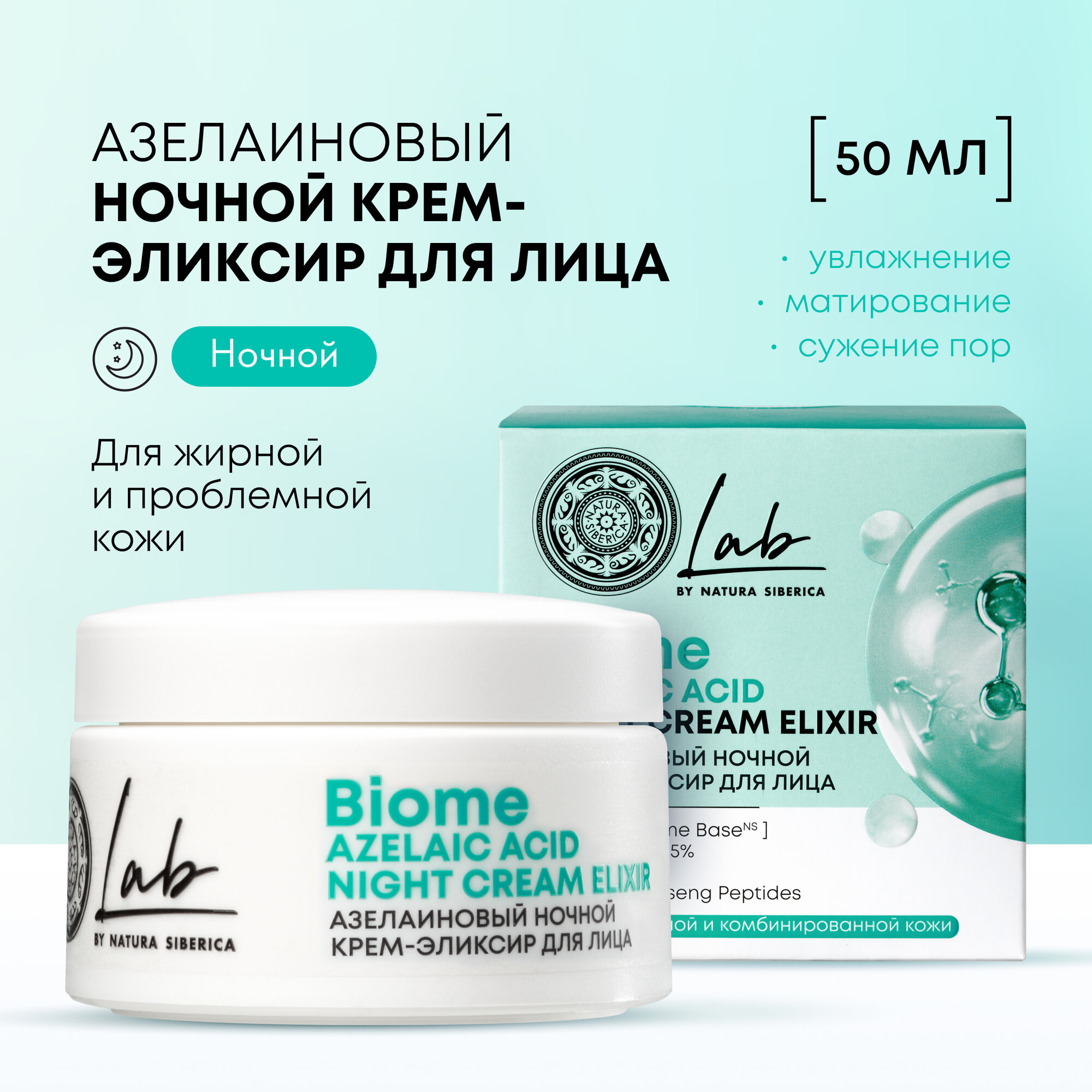 Крем-эликсир для лица Lab Biome Azelaic Acid, Азелаиновый ночной 50 мл - Natura Siberica