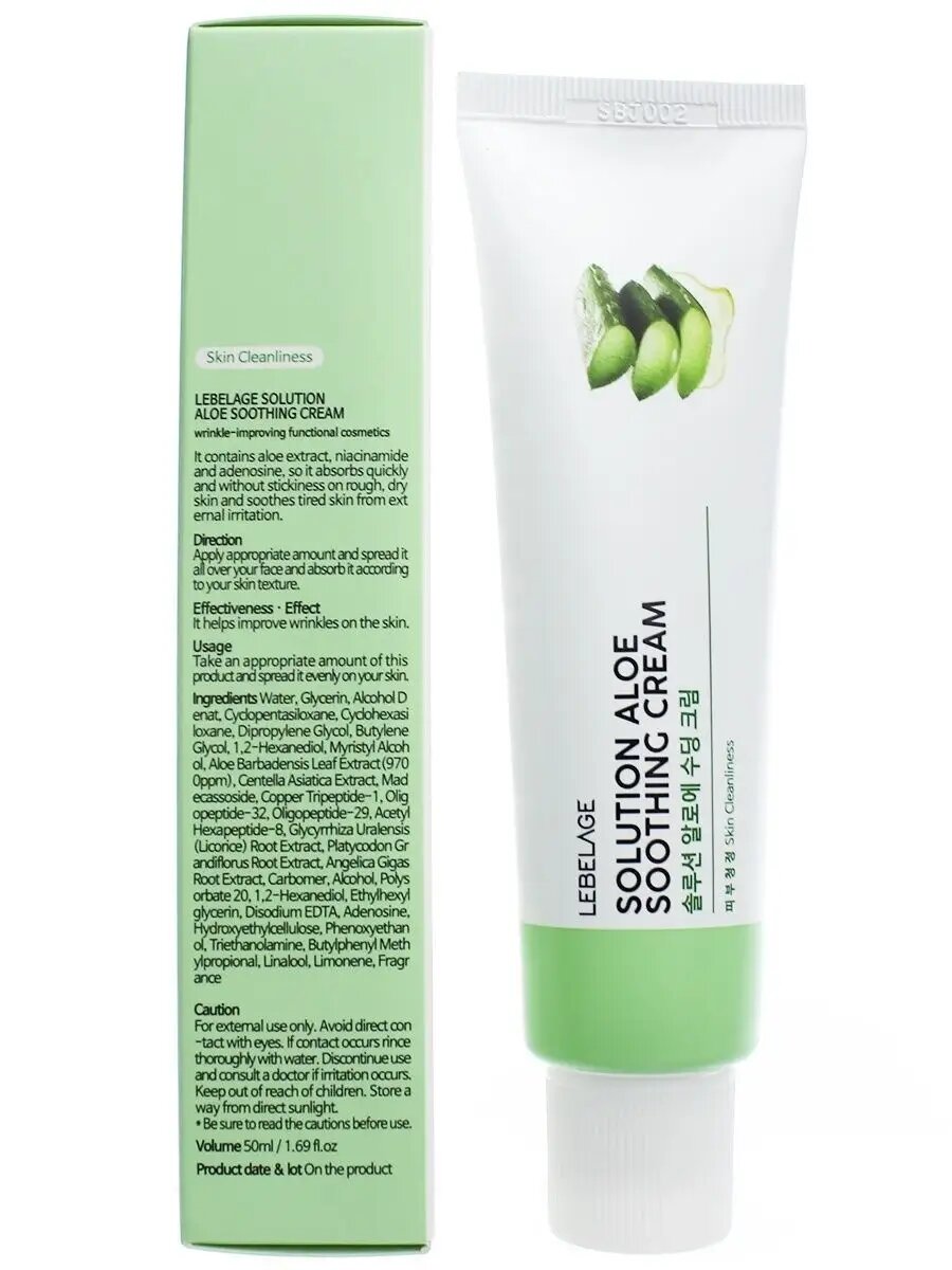 LEBELAGE Успокаивающий крем для лица увлажняющий с алоэ и пептидами антивозрастная уходовая корейская косметика Solution Aloe Soothing Cream 50ml