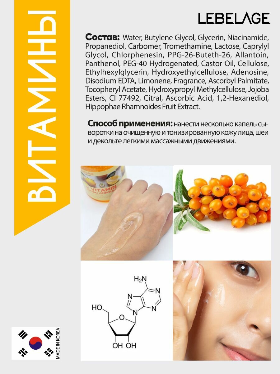 СохранитьОсветляющая витаминная сыворотка для лица [Lebelage] Dr. Vitamin Jumbo Ampoule интересное: