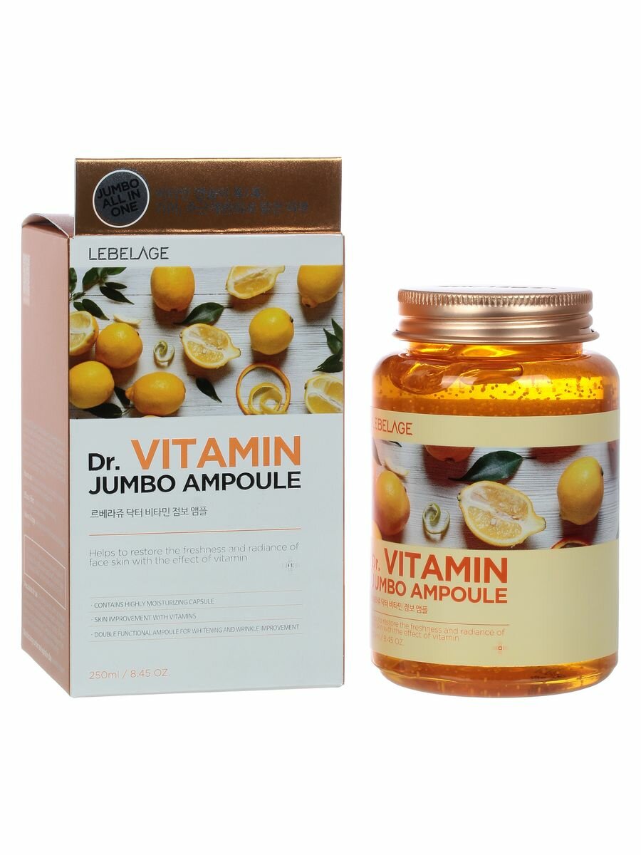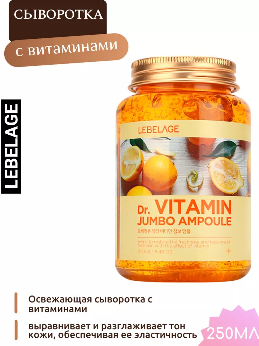 LEBELAGE Освежающая сыворотка для лица с витаминрм С 250 мл, Корея. Dr. Vitamin Jumbo Ampoule. Уходовая корейская косметика выравнивающая