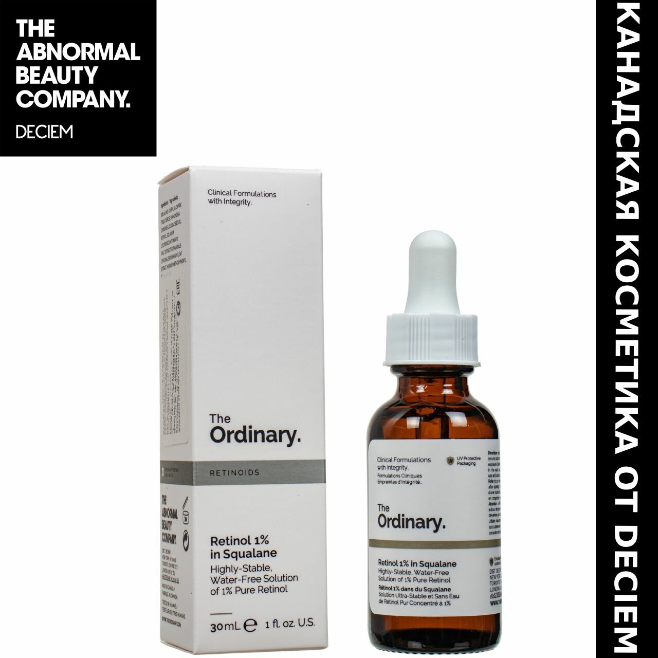 Сыворотка The Ordinary Squalane 30ml, ретинол 1%, антиоксидантный эффект
