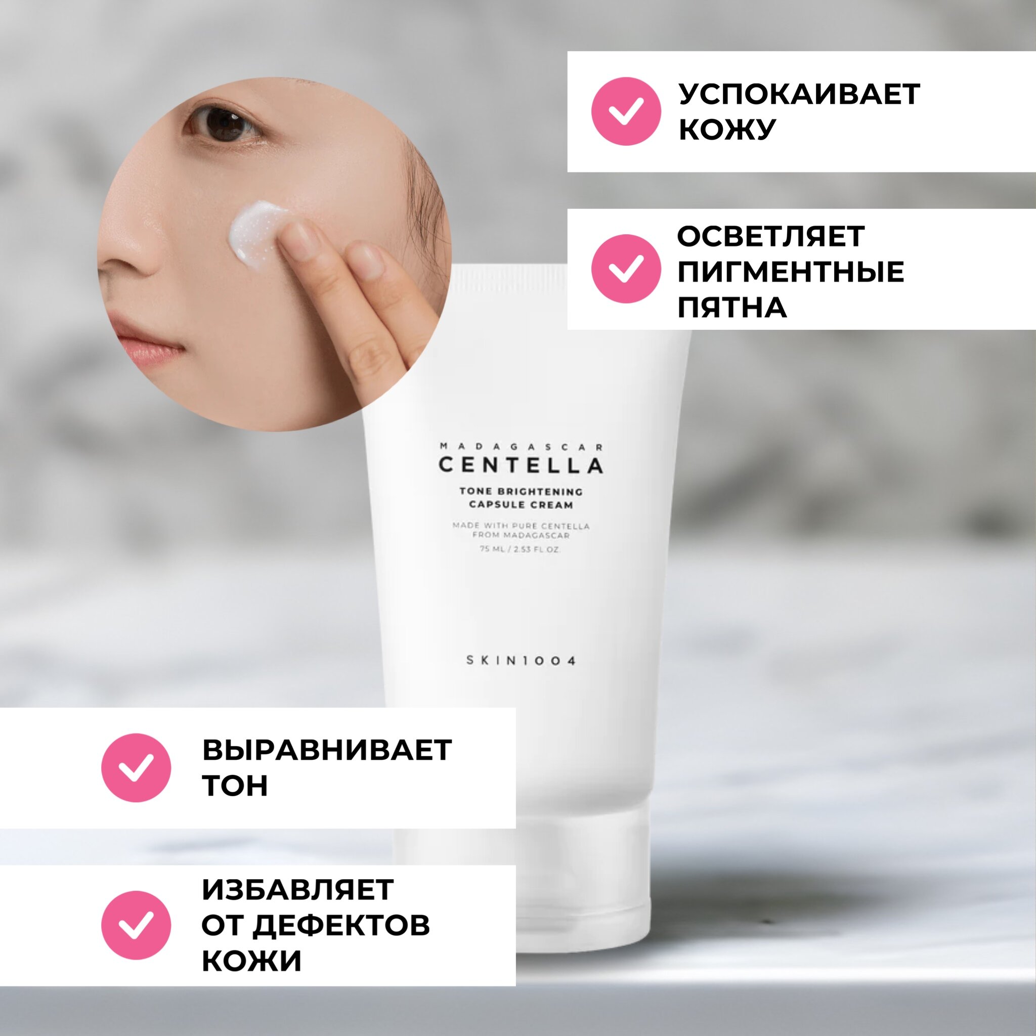 Ниже Вы можете прочитать отзывы на Многофункциональный крем против пигментации Skin 1004 Madagascar Centella Tone Brightening Capsule Cream 75 мл, ознакомится с подробными характеристиками, посмотреть интересные обзоры и фотографии на Многофункциональный крем против пигментации Skin 1004 Madagascar Centella Tone Brightening Capsule Cream 75 мл.