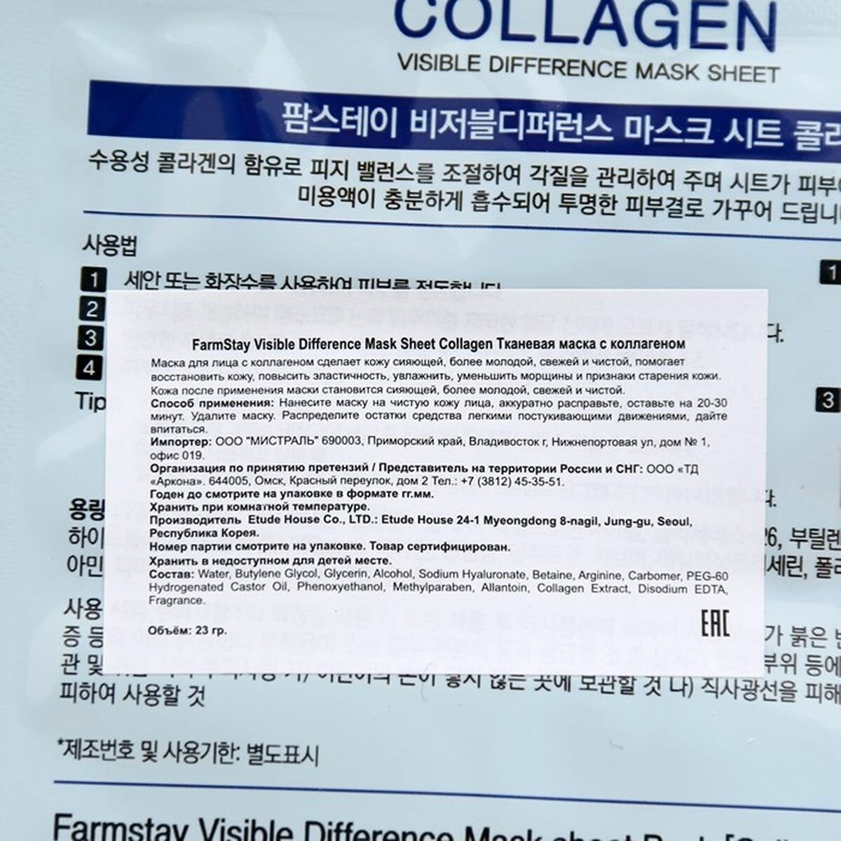 Тканевая маска для лица с коллагеном Farmstay, 23 мл, 2 шт. интересное: