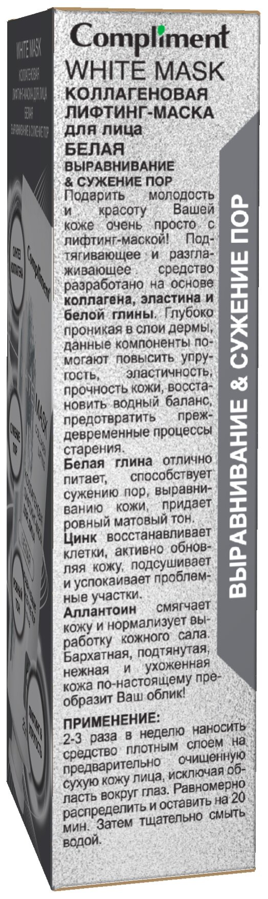 Compliment Лифтинг-маска для лица коллагеновая БЕЛАЯ Выравнивание&Сужение пор WHITE MASK, 80мл интересное: