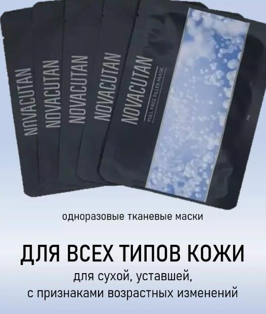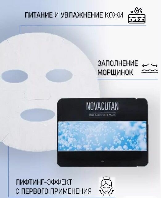 | Дополнительная информация | увлажнение; питание; разглаживание морщин; лифтинг эффект; придает здоровый и сияющий вид; биоревитализация; тканевая маска; маска для лица; лифтинговая маска; novakutan mask; |