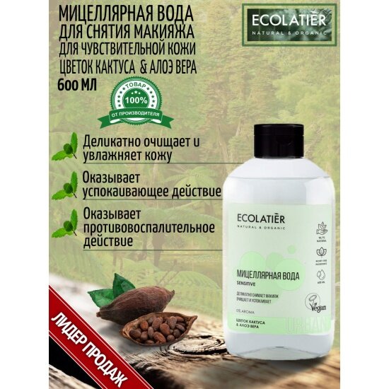 Купить ECOLATIER Мицеллярная вода для снятия макияжа с цветком кактуса и алоэ вера, 600 мл