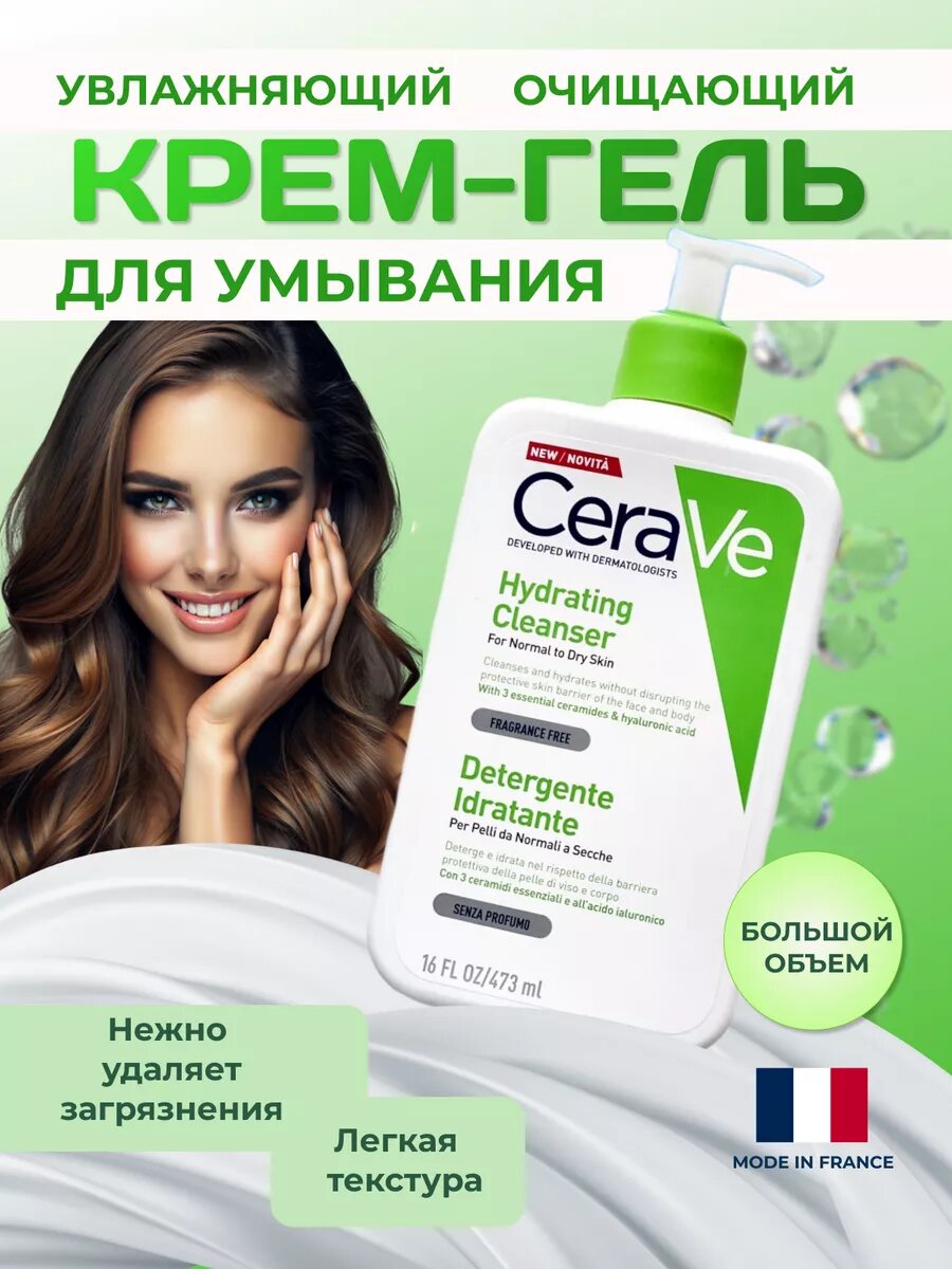 Купить CeraVe Hydrating Cleanser очищающий крем-гель для лица, 473 мл