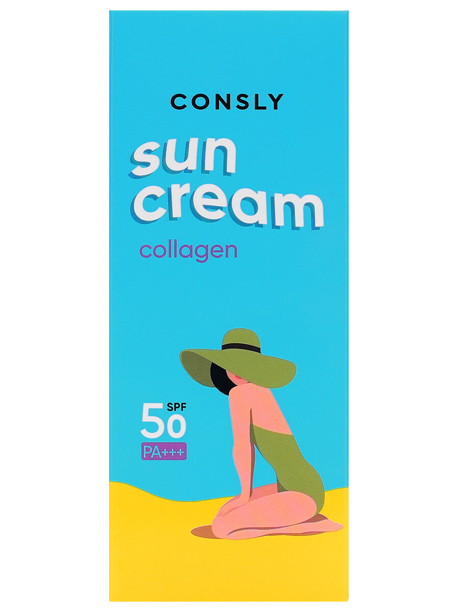Consly Солнцезащитный крем с морским коллагеном SPF 50+/PA+++ для нормальной и сухой кожи, 50мл