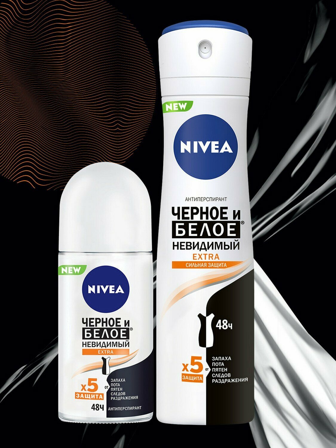 NIVEA Антиперспирант шариковый Extra Черное и Белое невидимый, 50 мл