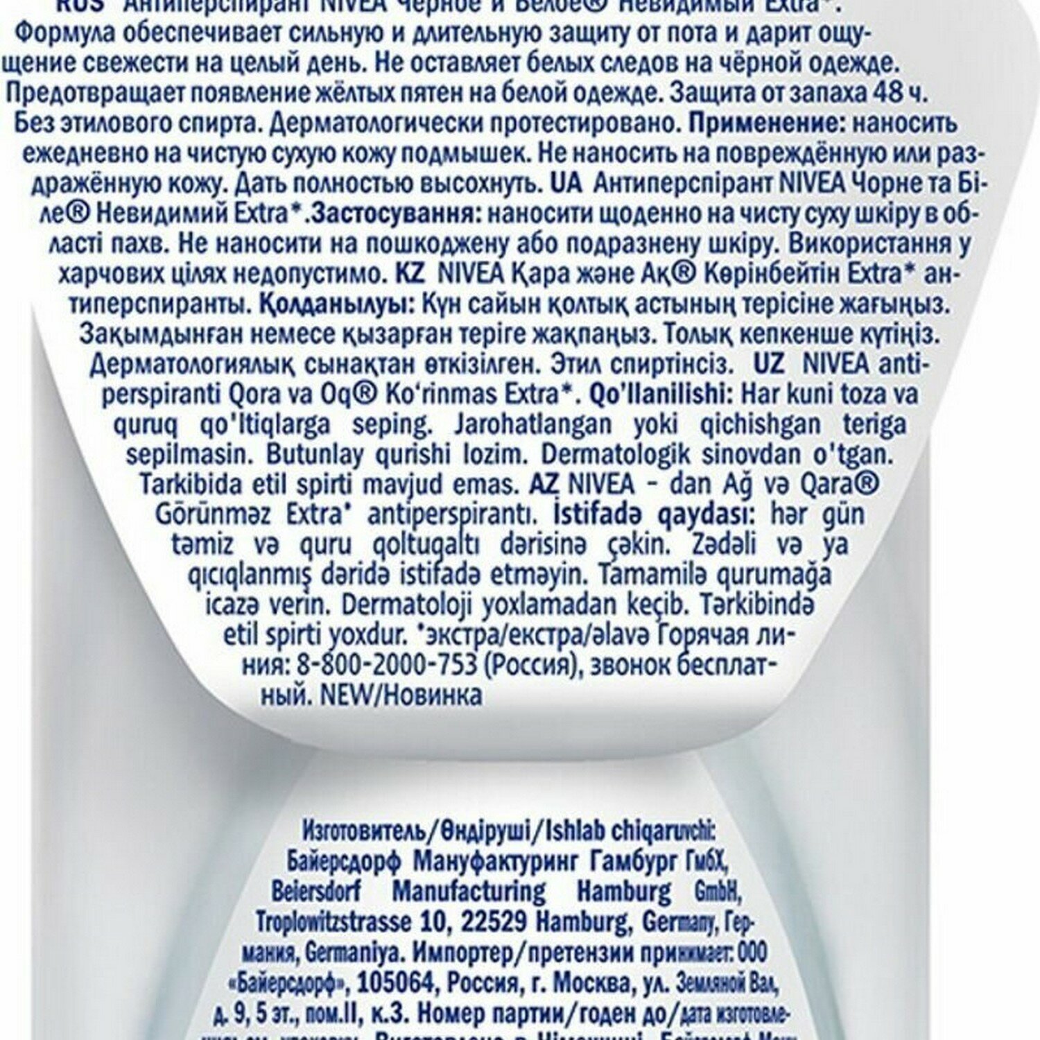 | Дополнительная информация | Нанести на чистую сухую область подмышек. Дать полностью высохнуть во избежание образования пятен на одежде. Не наносить на поврежденную или раздраженную кожу. |