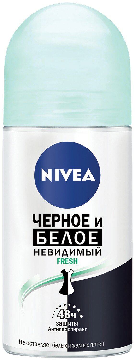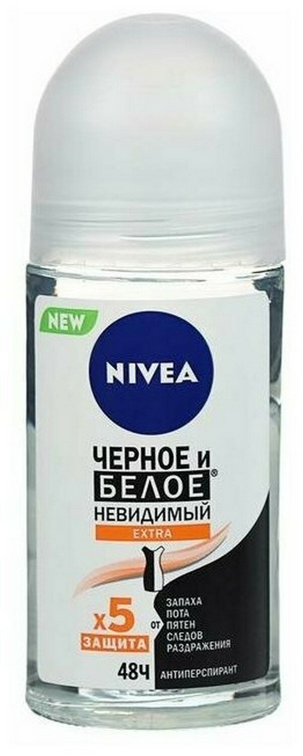 NIVEA Антиперспирант Черное и Белое Невидимый Extra, ролик, флакон, 50 мл
