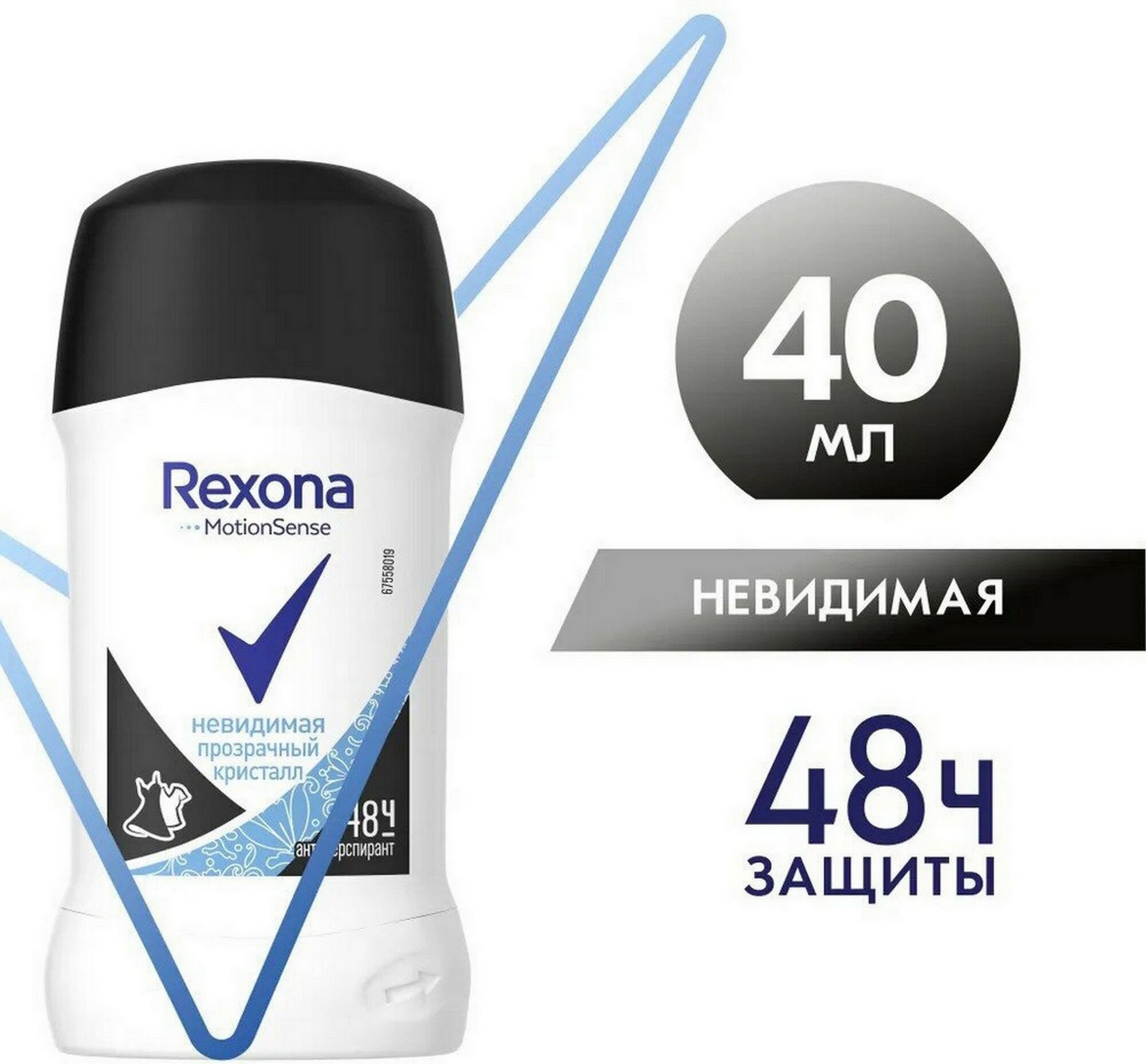 Купить Rexona Дезодорант-антиперспирант стик MotionSense Невидимая прозрачный кристалл, 40 мл - 1 шт