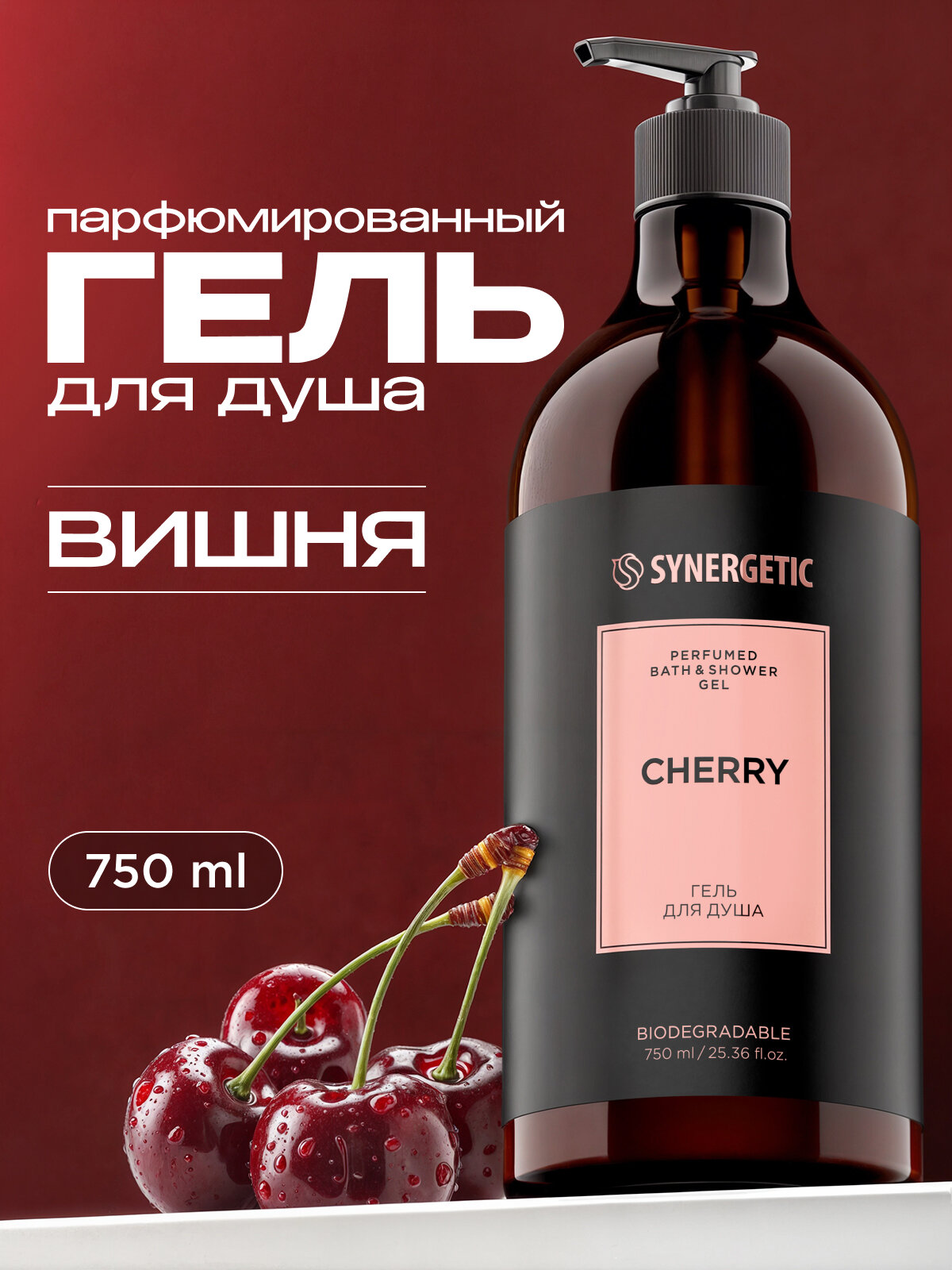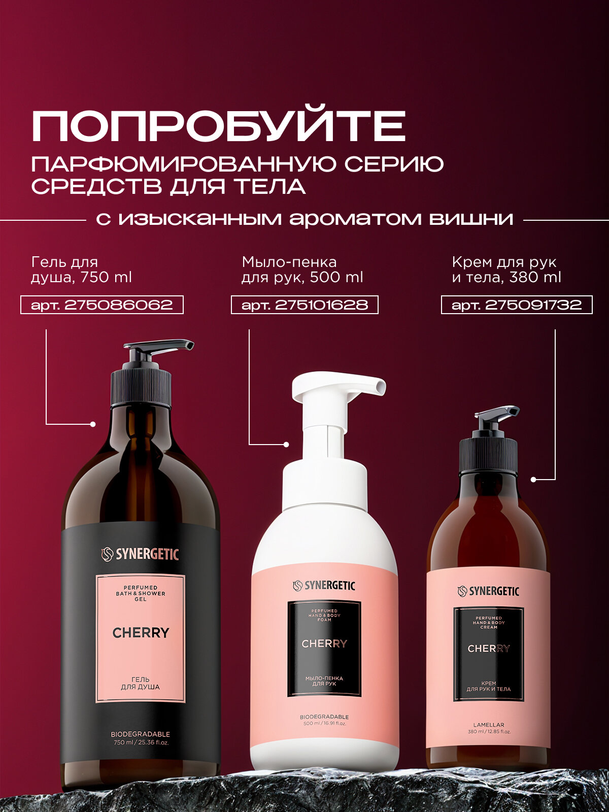 SYNERGETIC Парфюмированный гель для душа с ароматом вишни, 750 мл интересное: