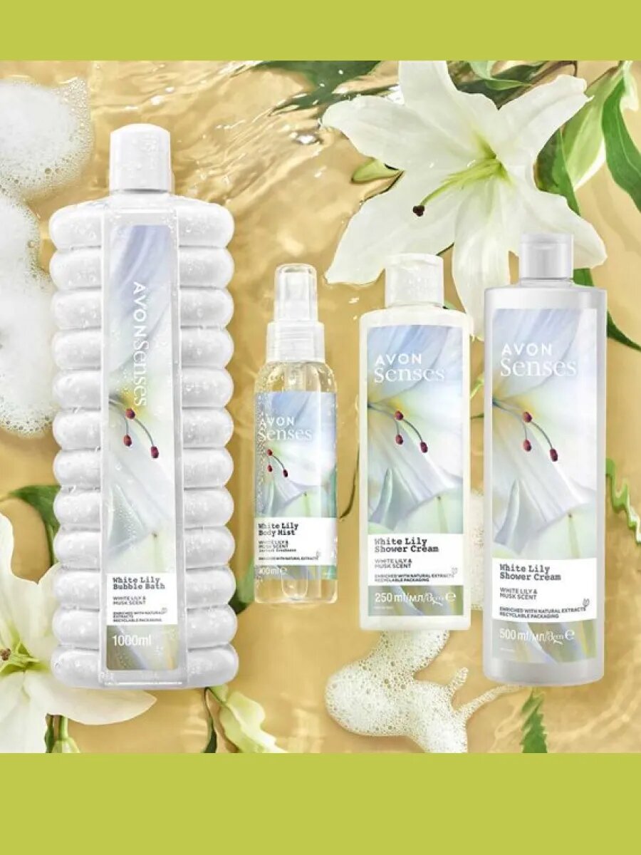 Набор Avon Senses Пена д/ванн Белая лилия 1л + Гель д/душа Морская лагуна 500мл + Спрей Нежная ваниль