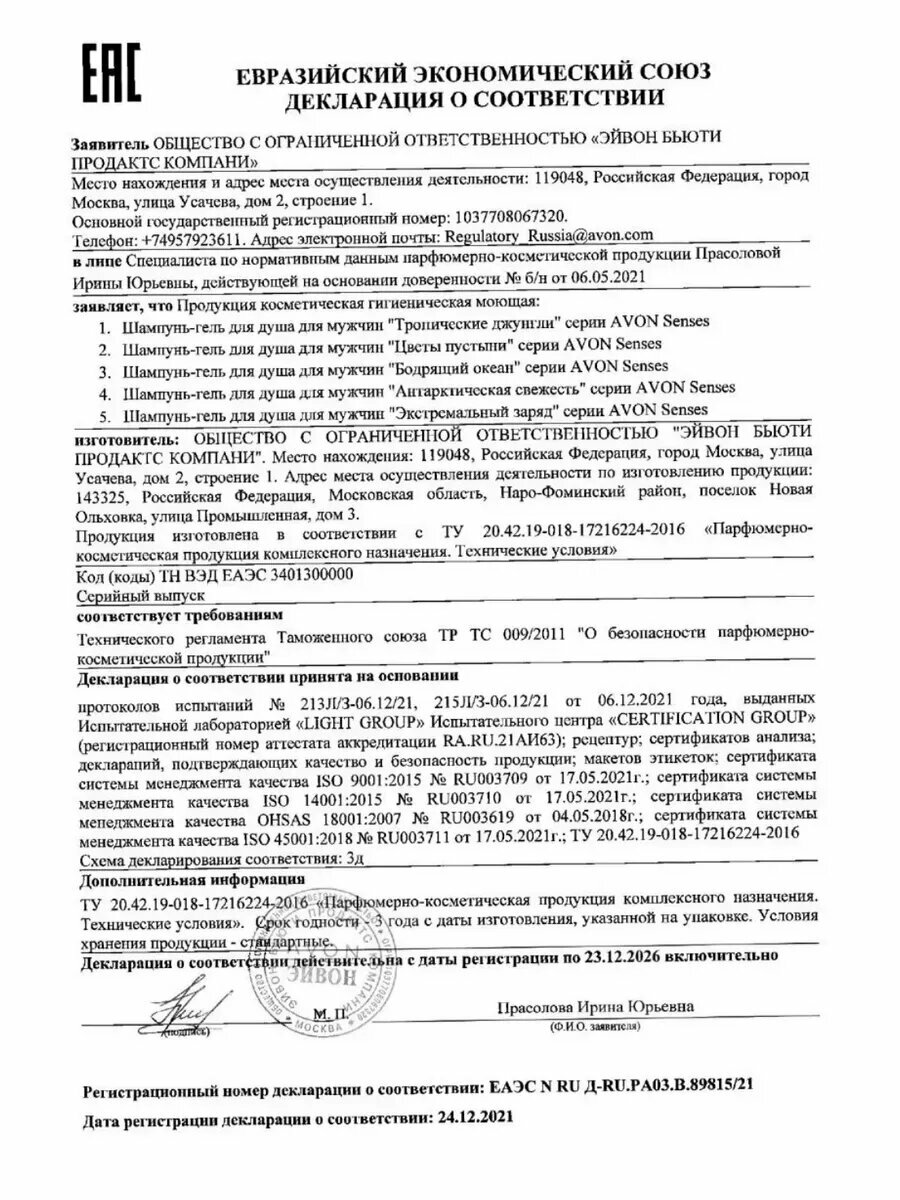 AVON/Эйвон Набор гелей для душа Senses (Сенсес) Энергия леса, Антарктическая свежесть, Экстремальный заряд, 250 мл