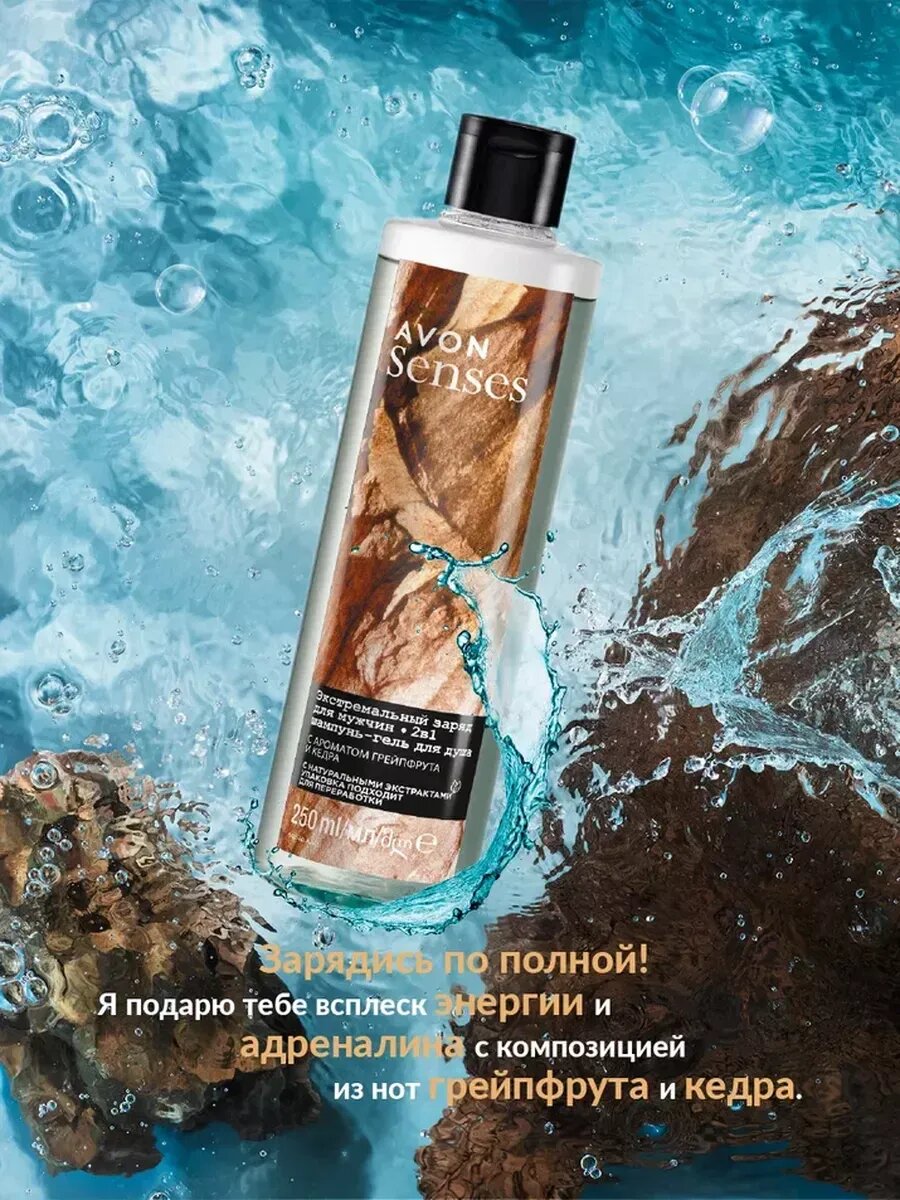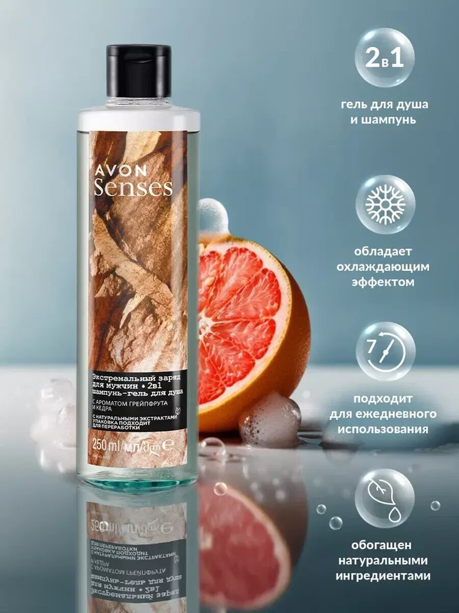 Шампунь-гель для душа Avon Senses для мужчин Экстремальный заряд 250 мл. х 2 шт.