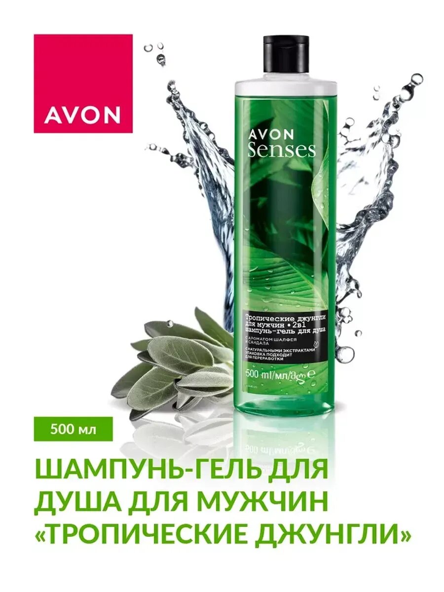 AVON Senses Шампунь-гель для душа для мужчин Тропические джунгли (Сила притяжения), 500 мл