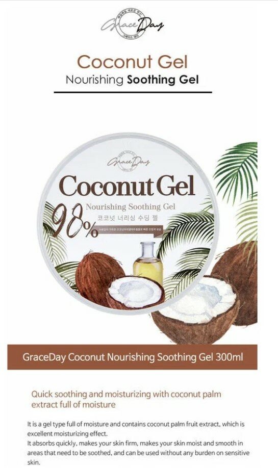 Grace Day Питательный успокаивающий гель для ухода за кожей лица и тела с экстрактом кокоса, корейская косметика. 300мл