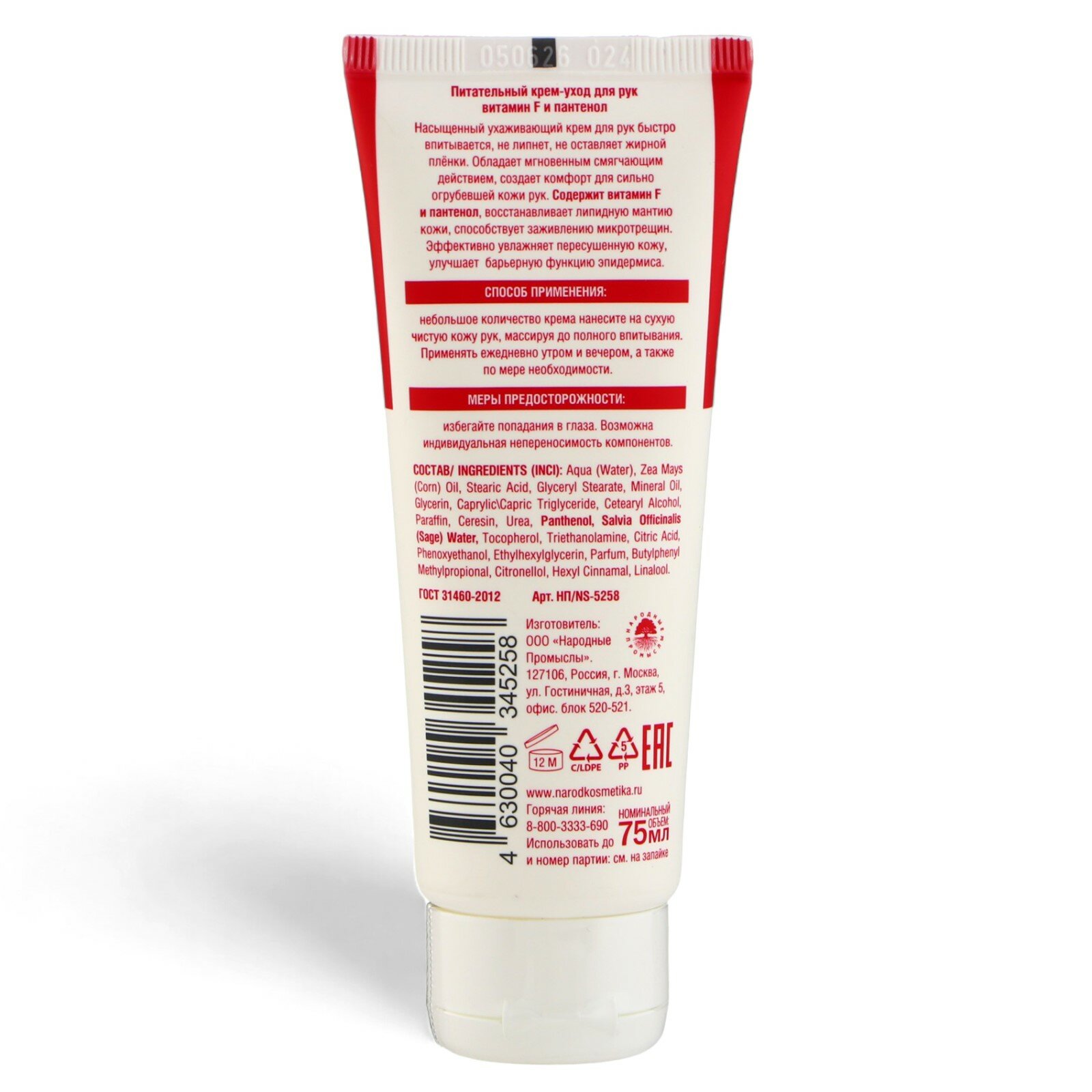 | Cостав | Aqua (Water), Zea Mays (Corn) Oil, Stearic Acid, Glyceryl Stearate, Mineral Oil, Glycerin, Caprylic\Capric Triglyceride, Cetearyl Alcohol, Paraffin, Ceresin, Urea, Panthenol, Salvia Officinalis (Sage) Water, Tocopherol, Triethanolamine, Citric Acid, Phenoxyethanol, Ethylhexylglycerin, Parfum, Butylphenyl Methylpropional, Citronellol, Hexyl Cinnamal, Linalool. |