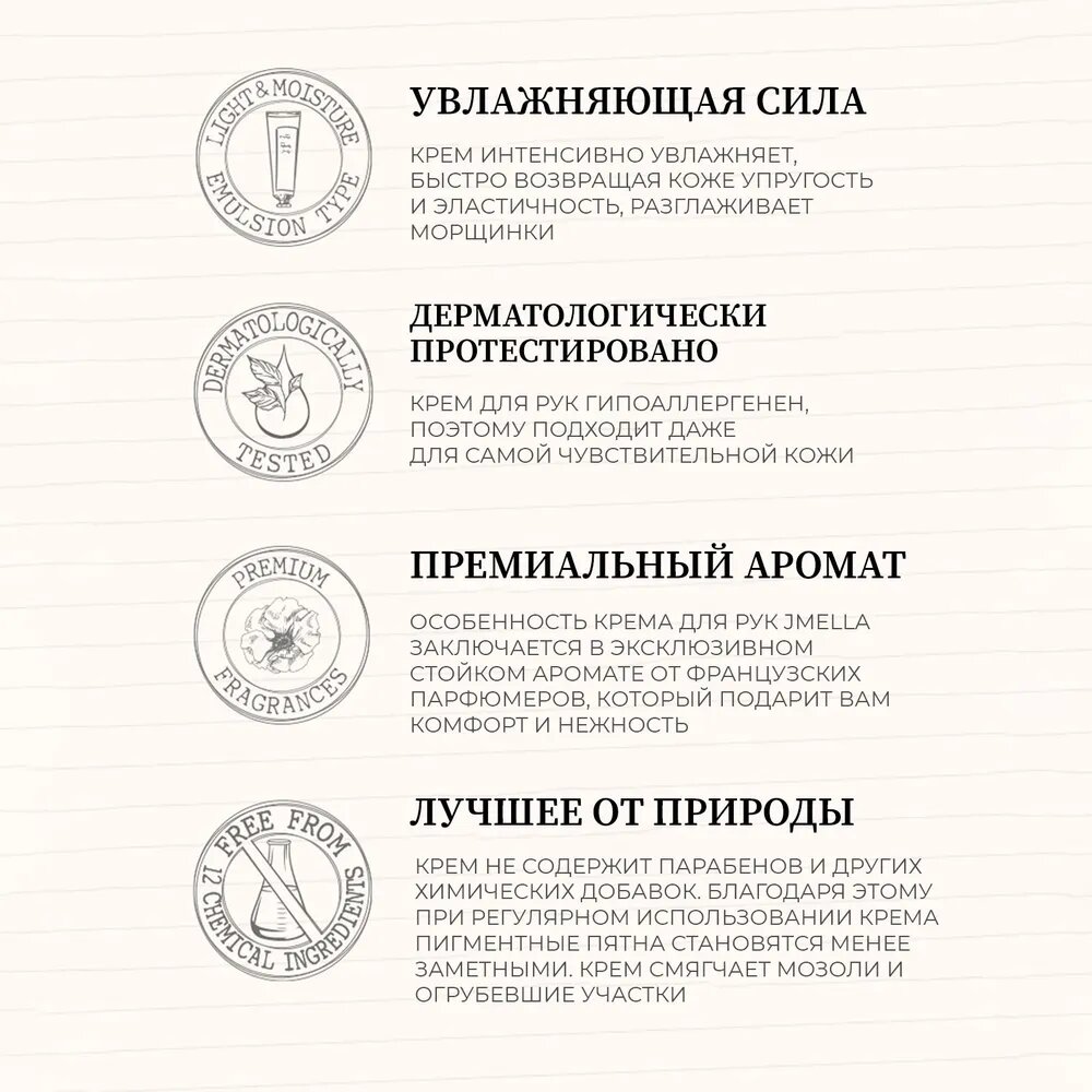 Jmella Крем для рук Альдегид, жасмин и белый мускус, 50 мл