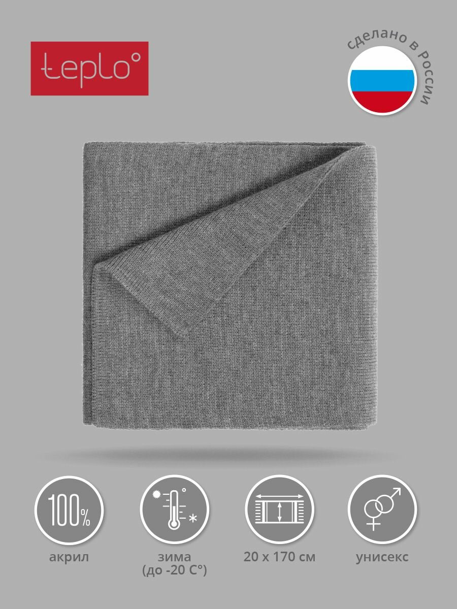 Шарф teplo для женщин,170х20 см, универсальный, серый
