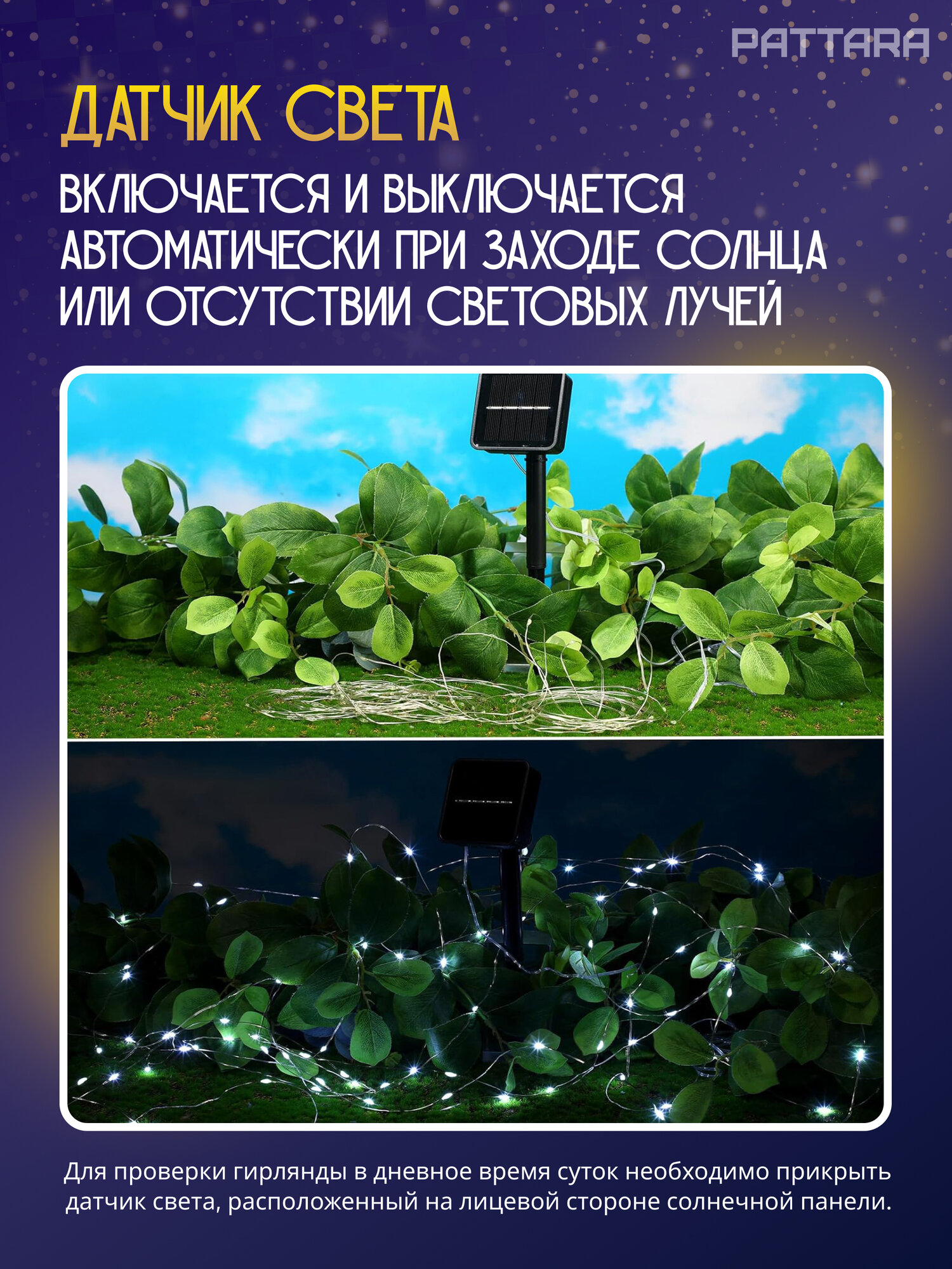 Гирлянда на солнечной батарее уличная 10 (+2) м, 12 м