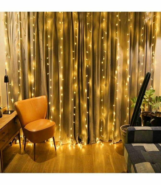 Гирлянда-штора 3х2 м, теплый желтый цвет интересное: