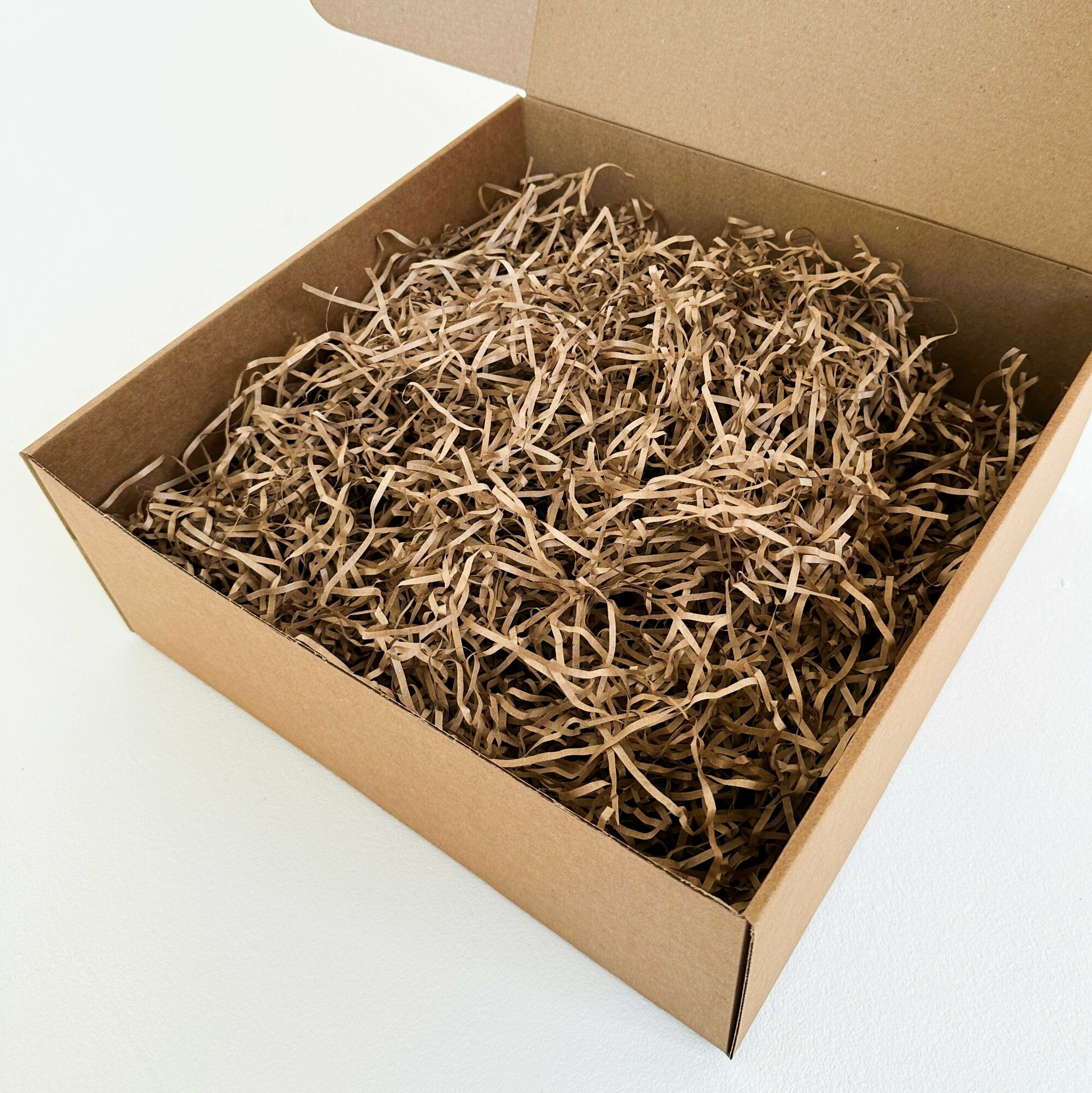 Огромная подарочная коробка GILEV 45х45х20см с коричневой лентой и наполнителем крафт