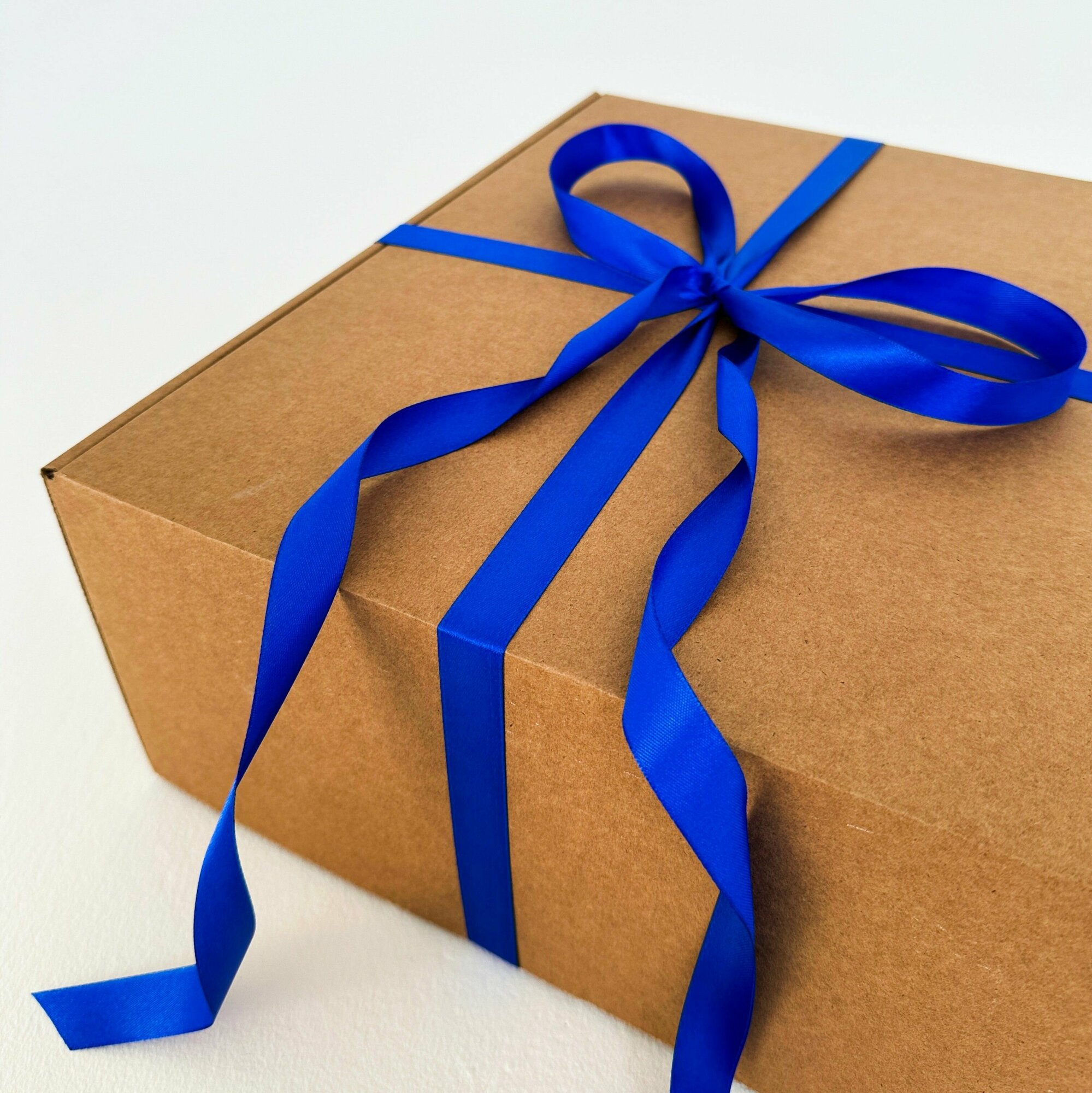 2 штуки - Подарочная коробка GILEV 44x32x15см с синей лентой и наполнителем крафт