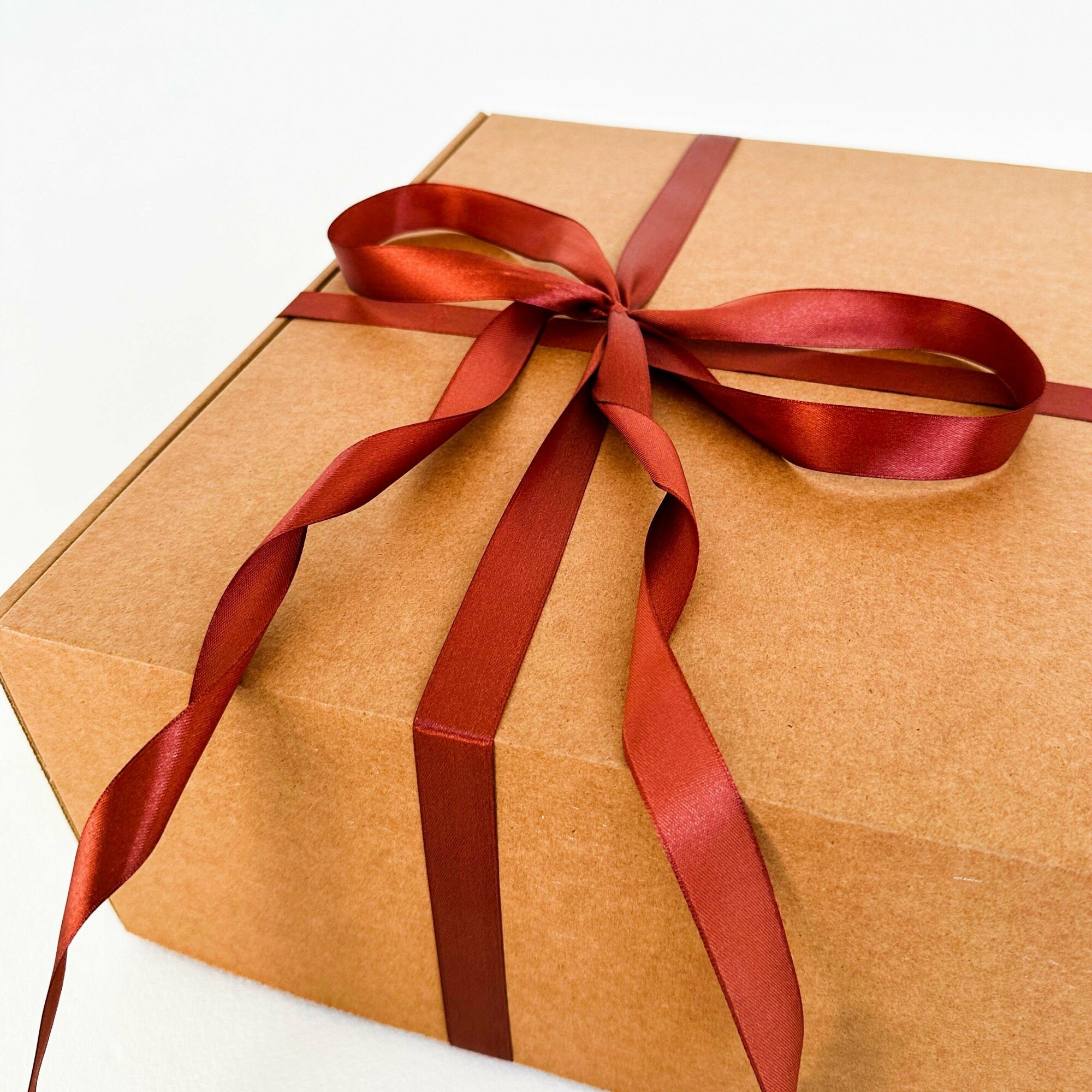 Огромная подарочная коробка GILEV 45х45х20см с бордовой лентой и наполнителем крафт