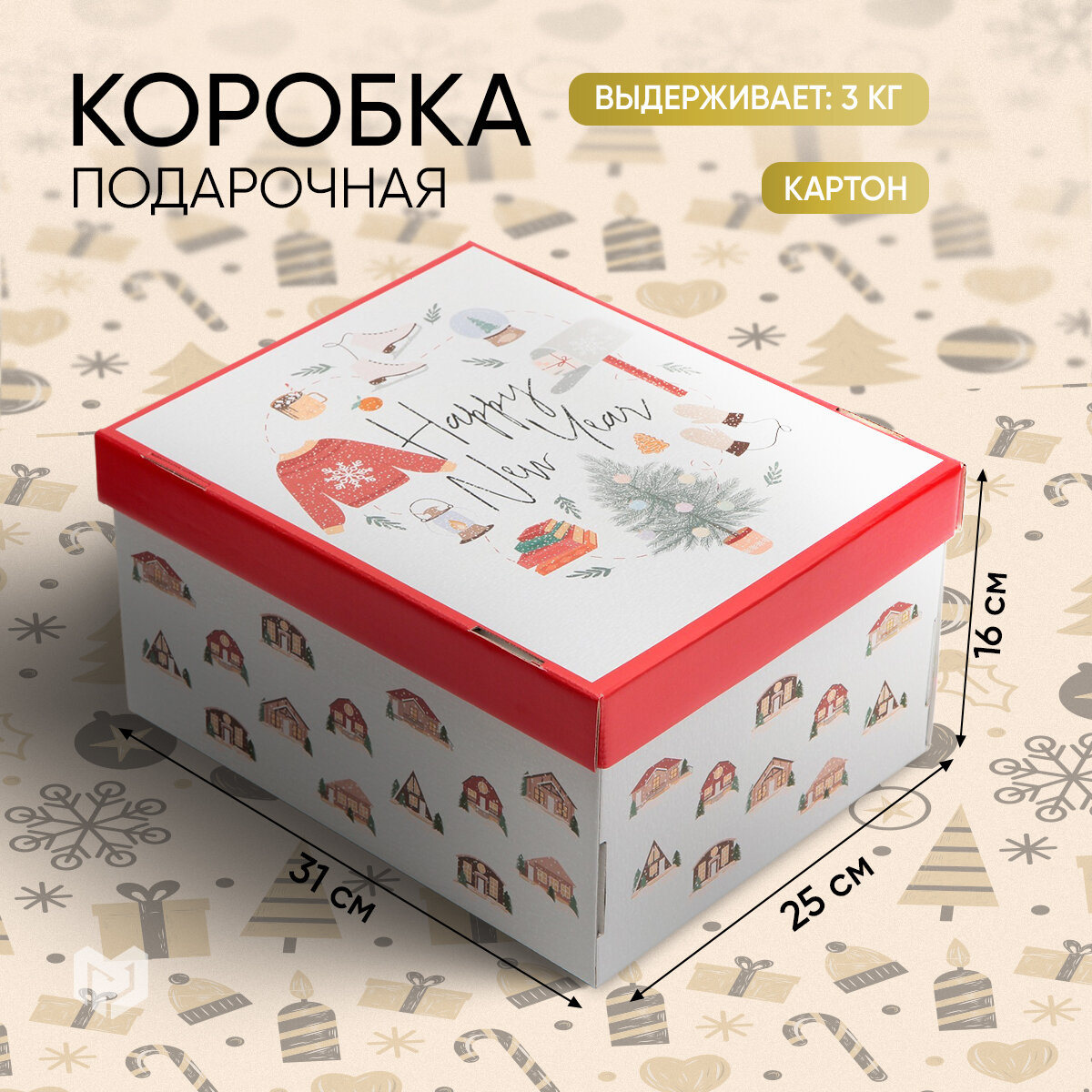 Коробка подарочная новогодняя, 31 х 25 х 16 см, для упаковки подарка на Новый год