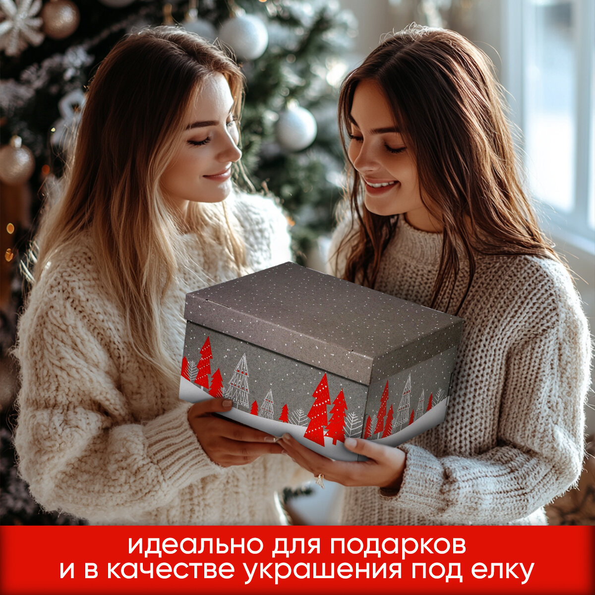 Коробка подарочная новогодняя, 31 х 25 х 16 см, для упаковки подарка на Новый год