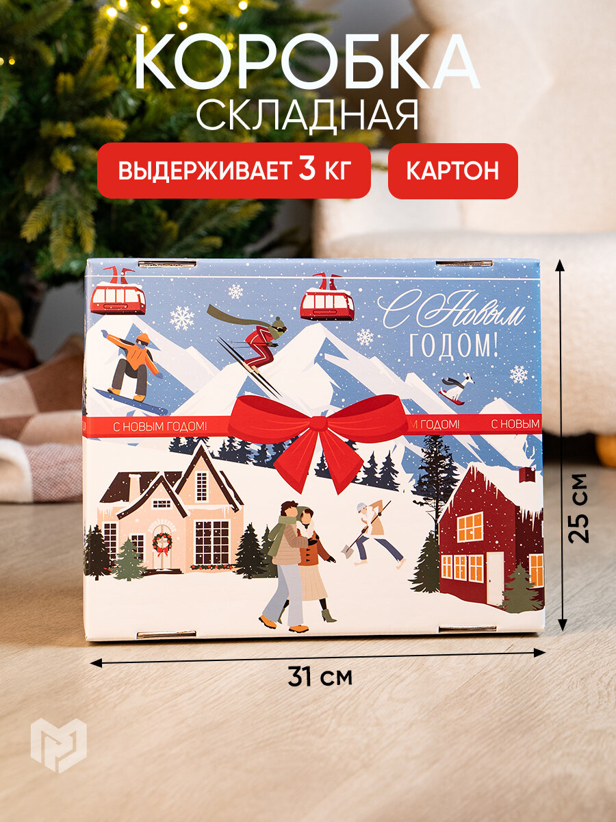 Коробка подарочная новогодняя, 31 х 25 х 16 см, для упаковки подарка на Новый год