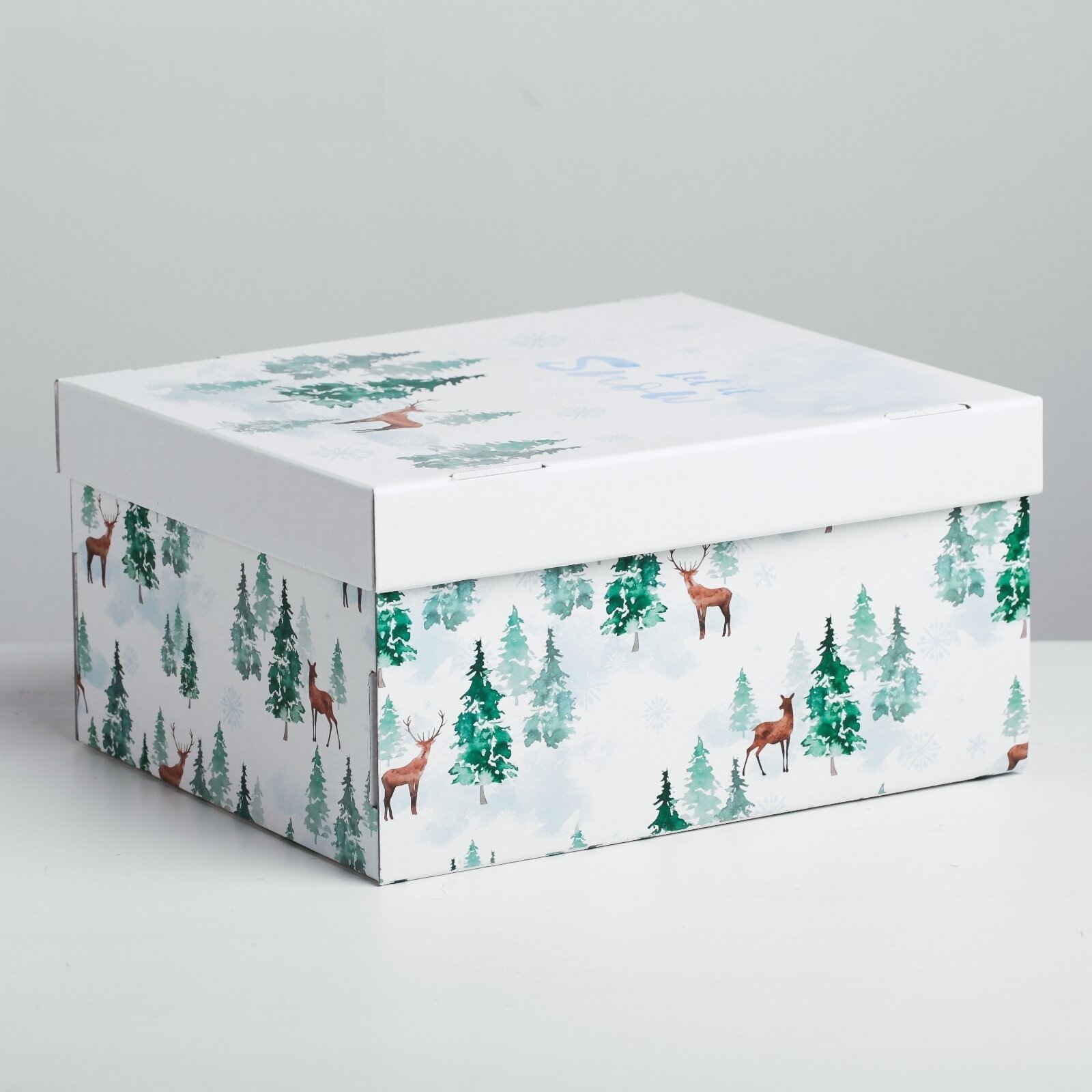 Коробка подарочная новогодняя «Лесная сказка», 31 х 25 х 16 см, белый, для упаковки подарка на Новый год