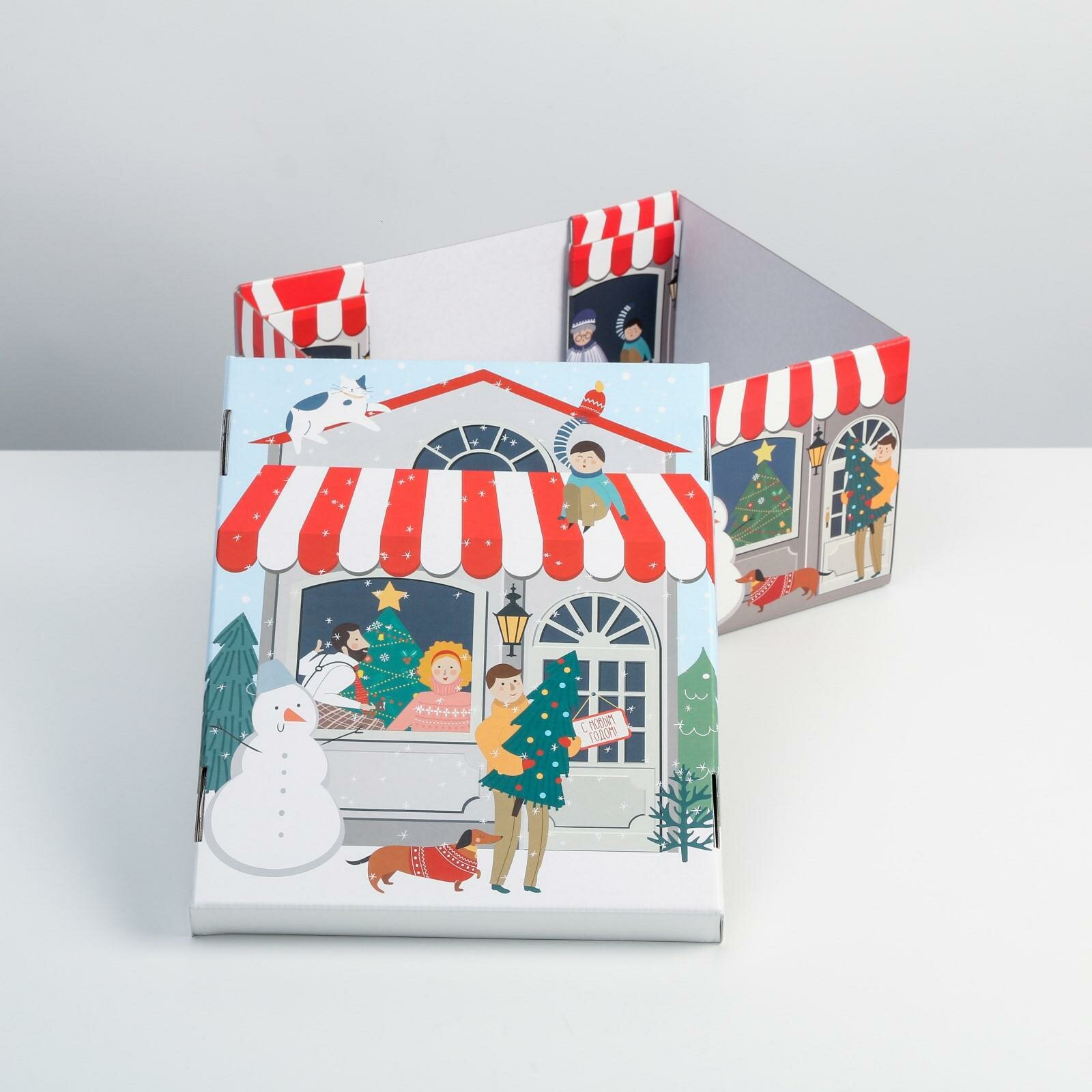 Коробка подарочная новогодняя складная «Новогодний город», 31.2 х 25.6 х 16.1 см