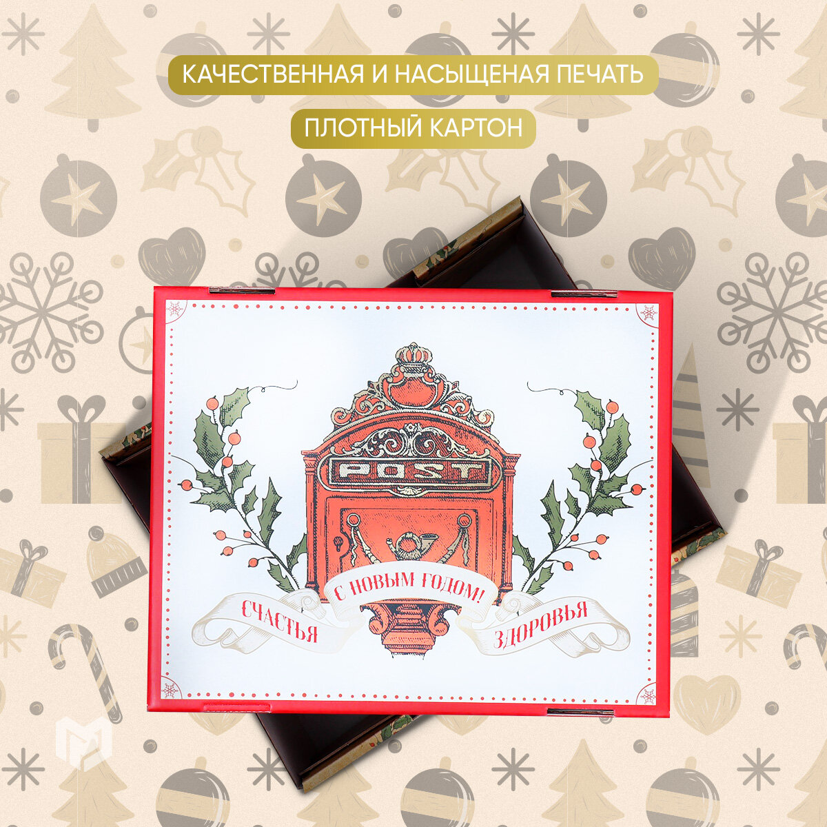 Коробка подарочная «Новогоднее поздравление», 31 х 25 х 16 см, упаковка для подарка на Новый год