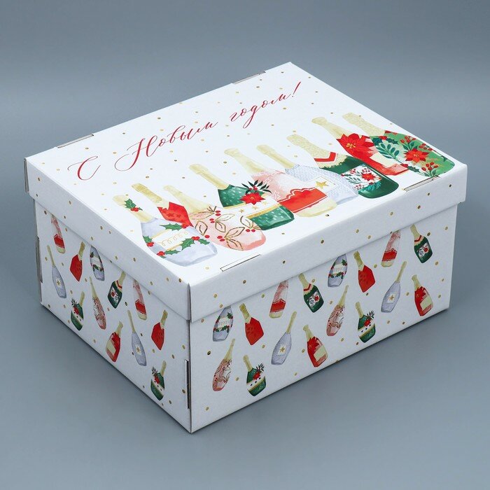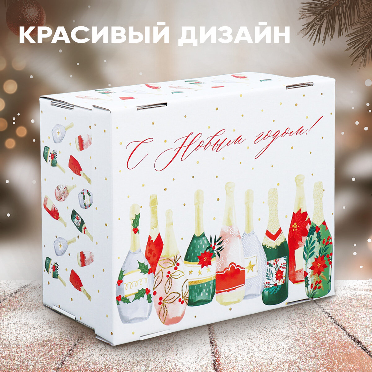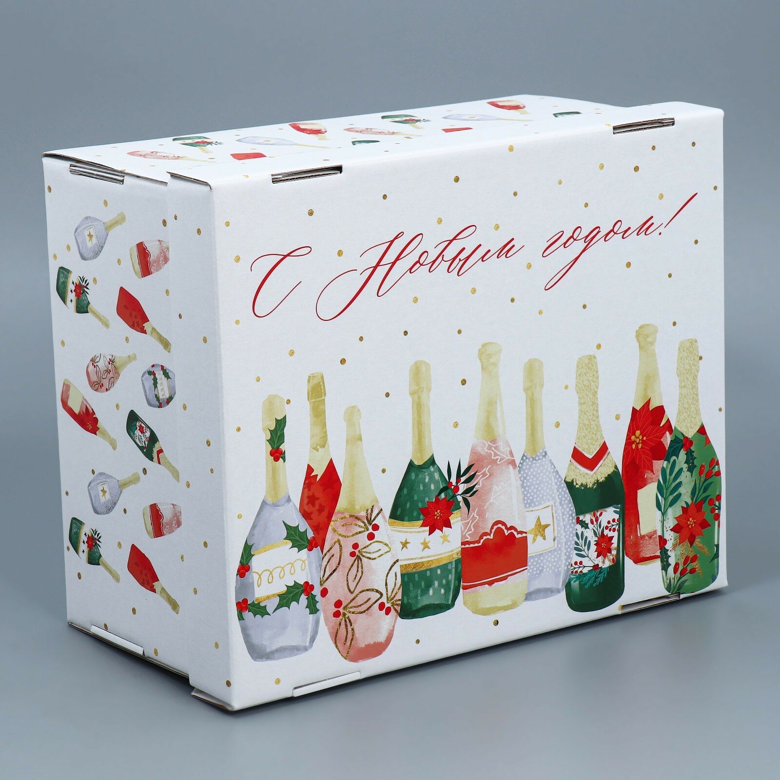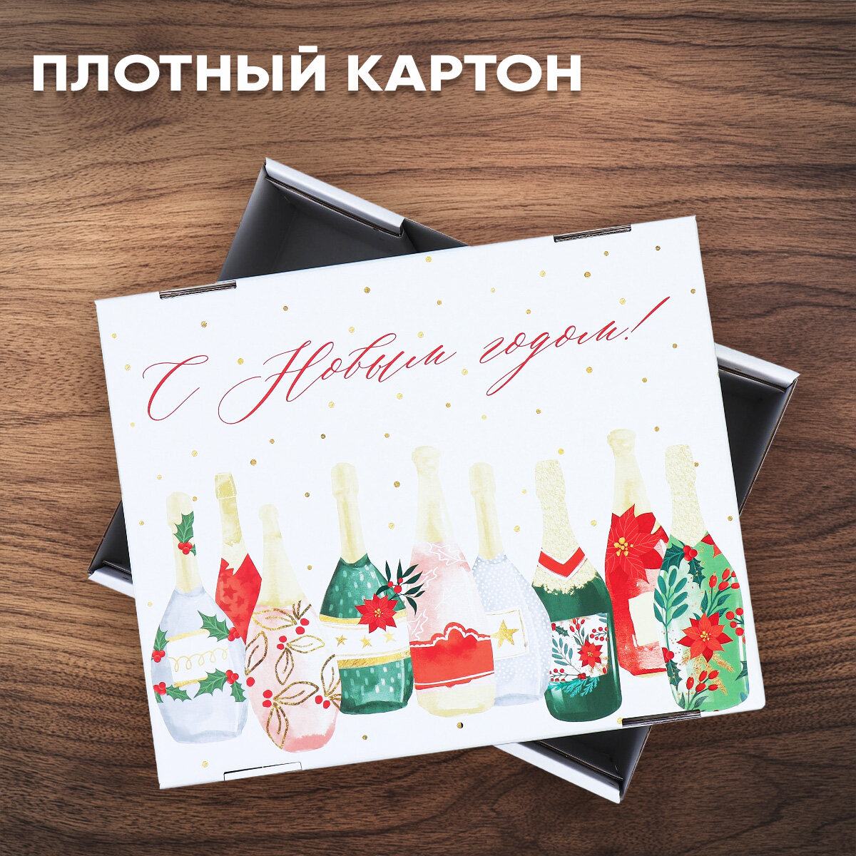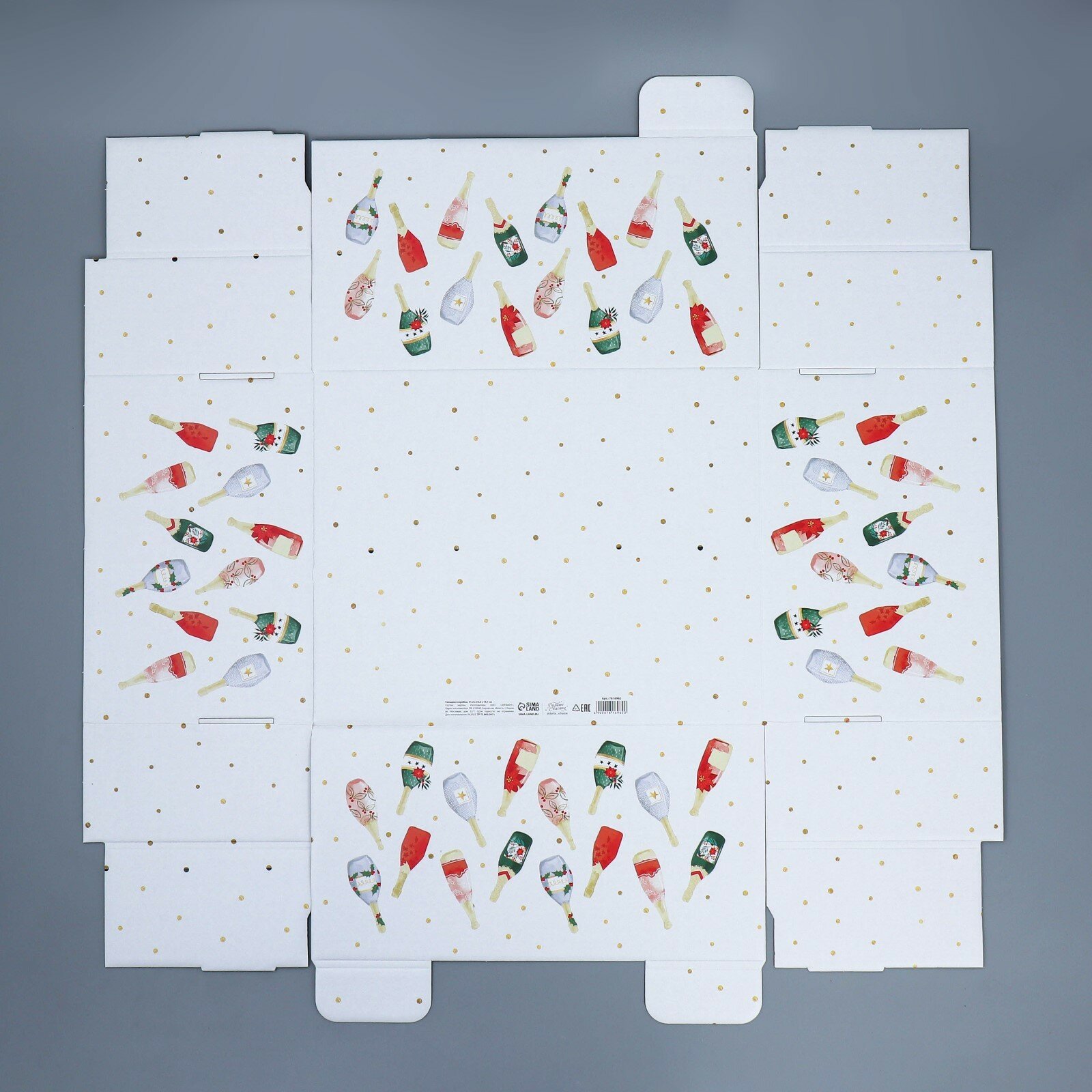 Купить Коробка подарочная новогодняя «Шампанское», 31 х 25 х 16 см, белый, картон, для упаковки подарка на Новый год