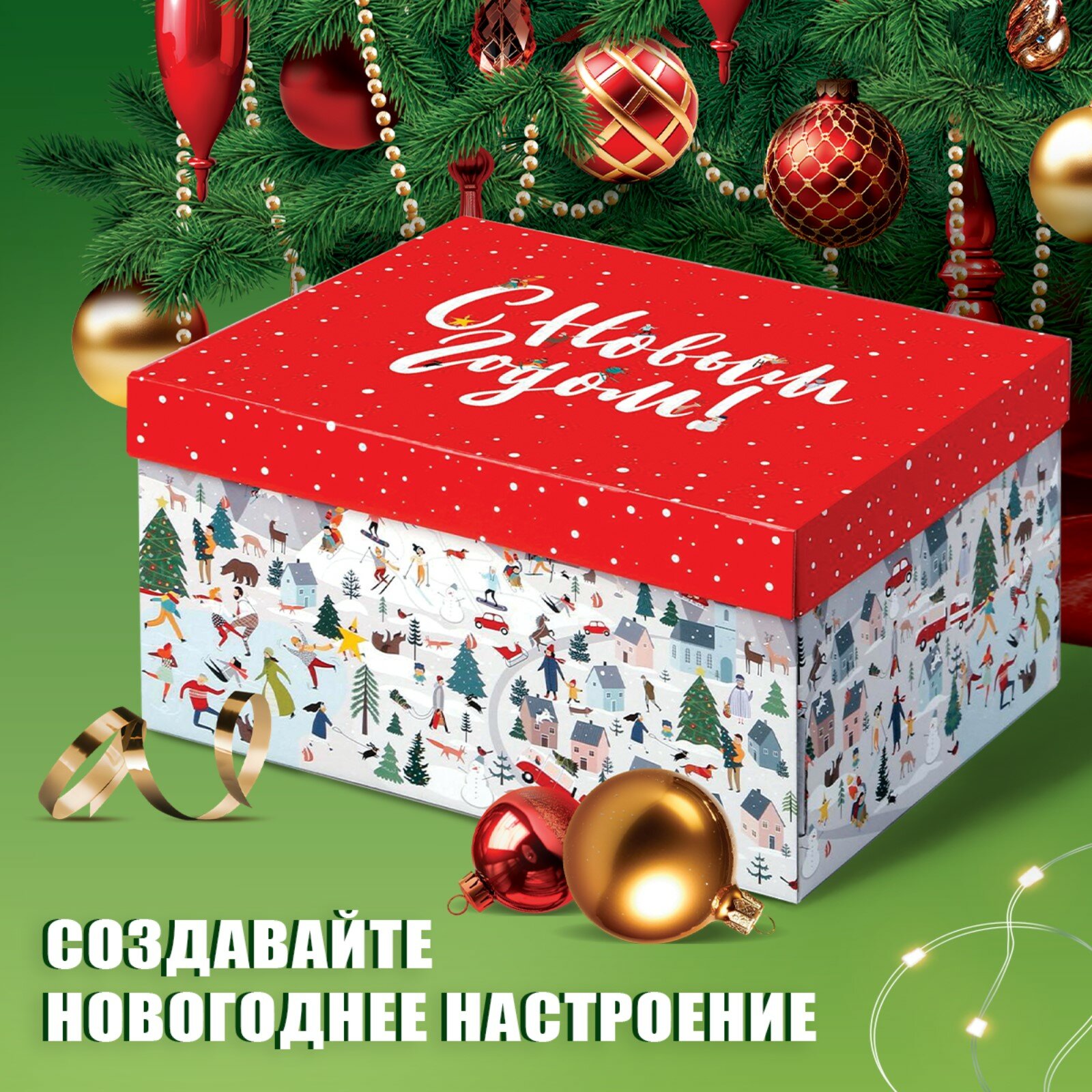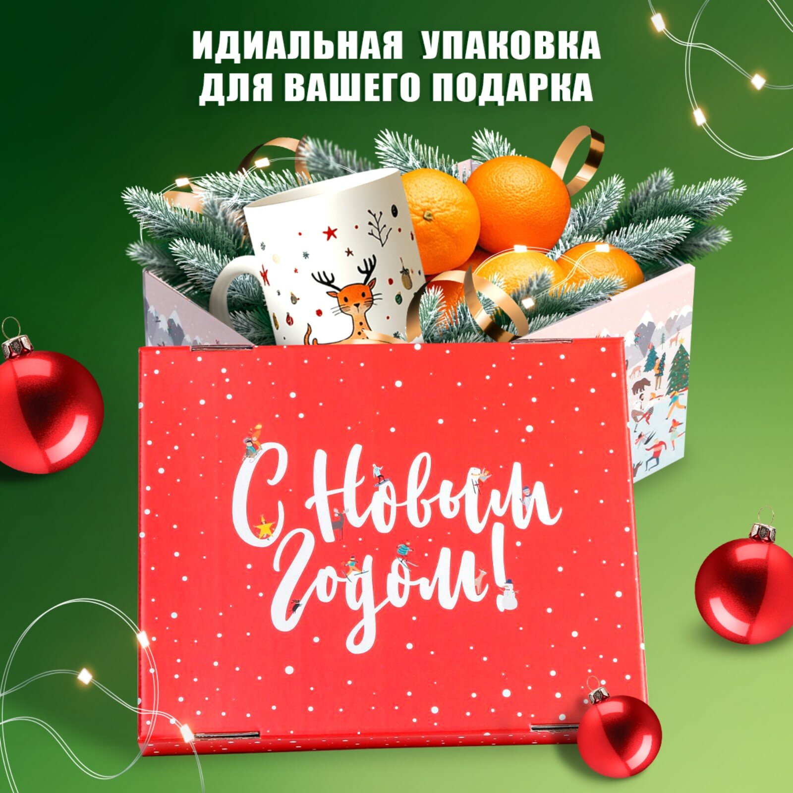 Коробка подарочная новогодняя, 31 х 25 х 16 см, для упаковки подарка на Новый год