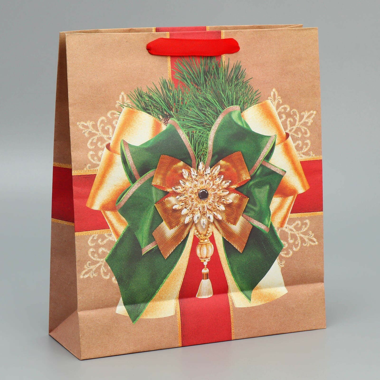 СохранитьПодарочный пакет новогодний крафтовый вертикальный «Новогодний подарок», M 26 х 30 х 9 см, для упаковки подарка на Новый год. интересное: