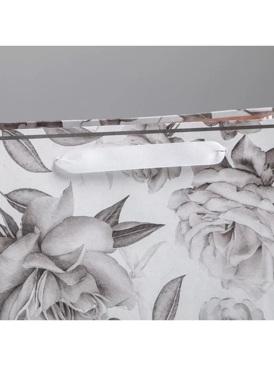 Пакет подарочный крафтовый с ручками Арт Узор с принтом 'Пионы', 100 г/м2, 25*22*12 см