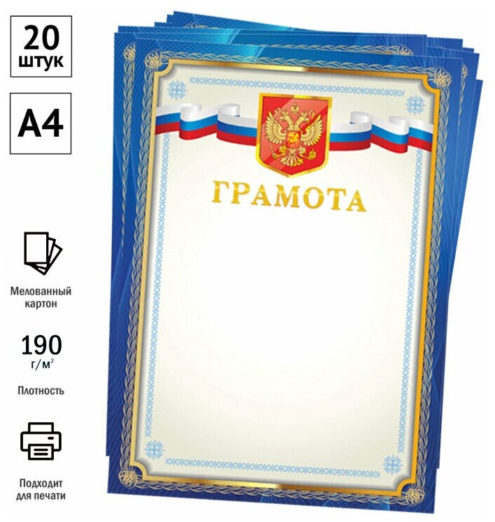 ArtSpace Грамота A4 190 г/м2 20 шт. мелованный картон, синий BGR_28134 интересное:
